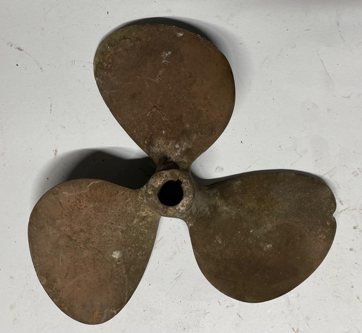 Description: VINTAGE Maritime 3-Blade Boat Propeller. Measurement approximate: 12" Diameter. Material: Brass