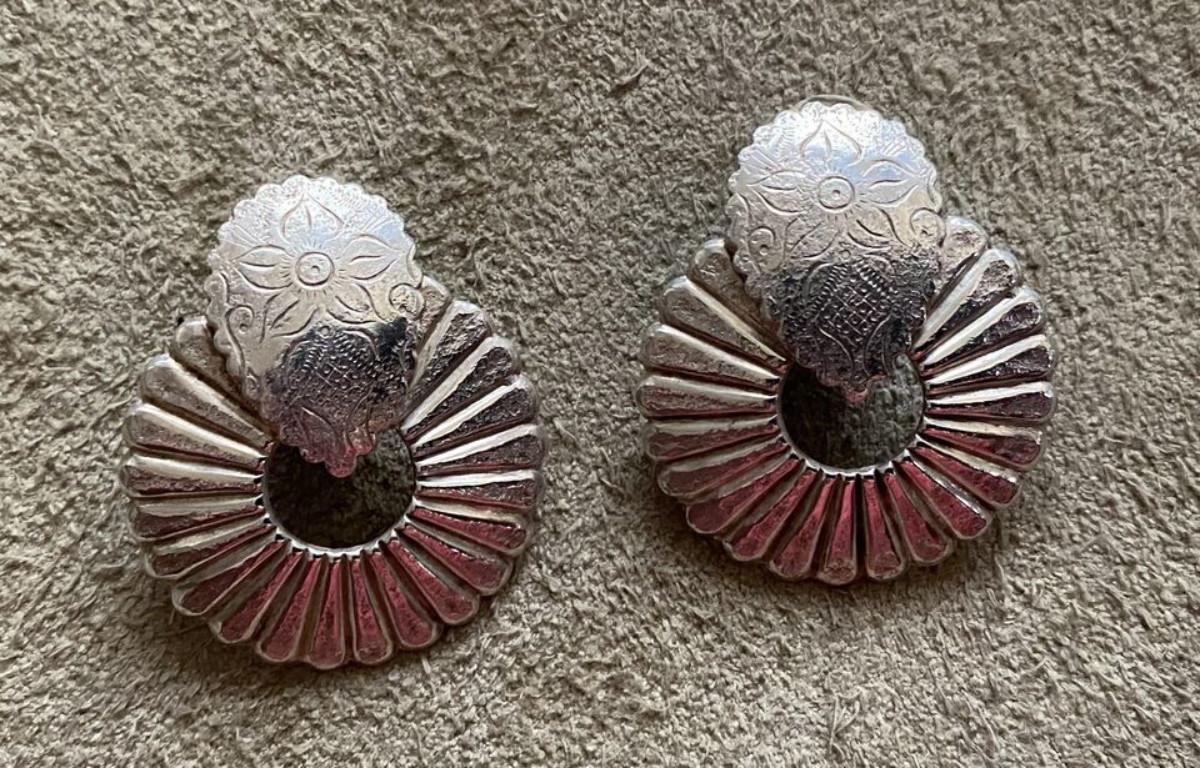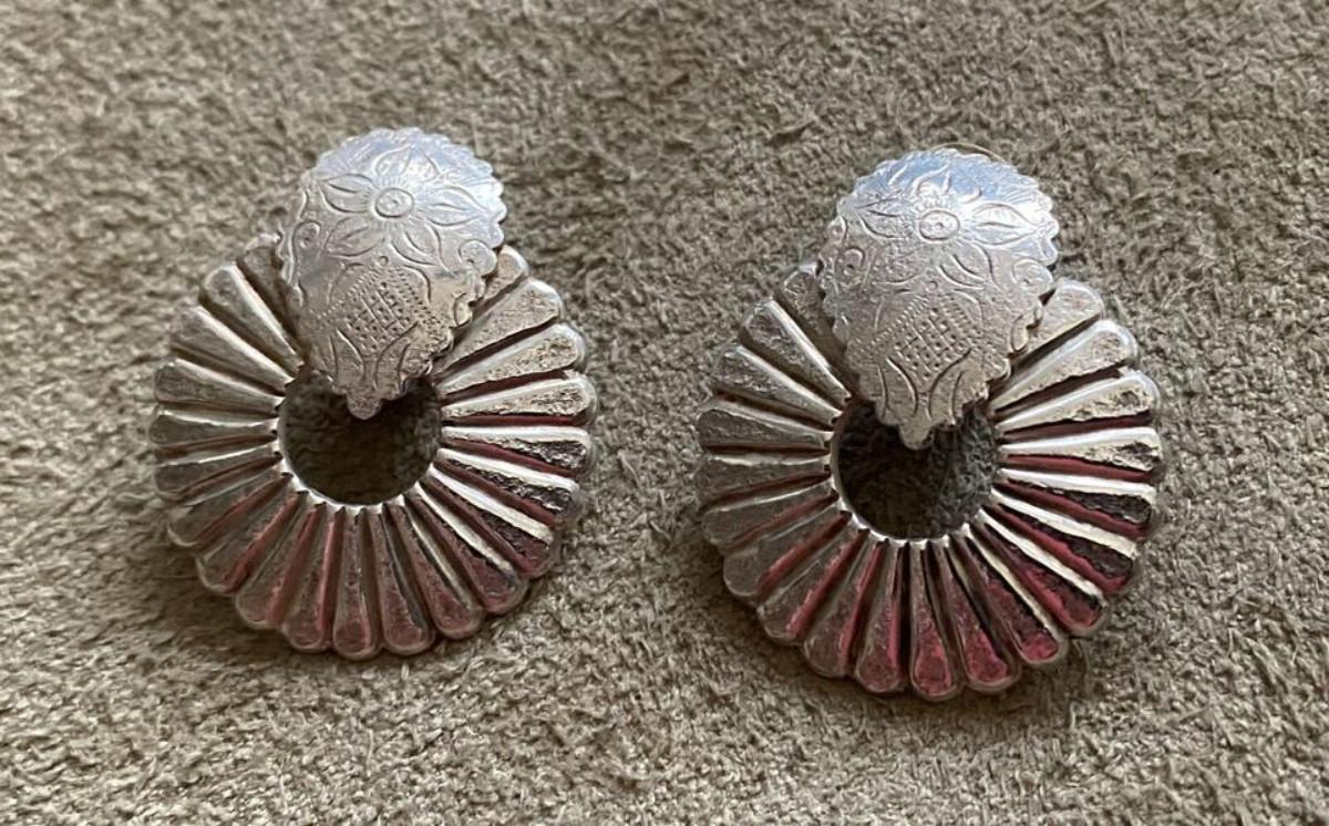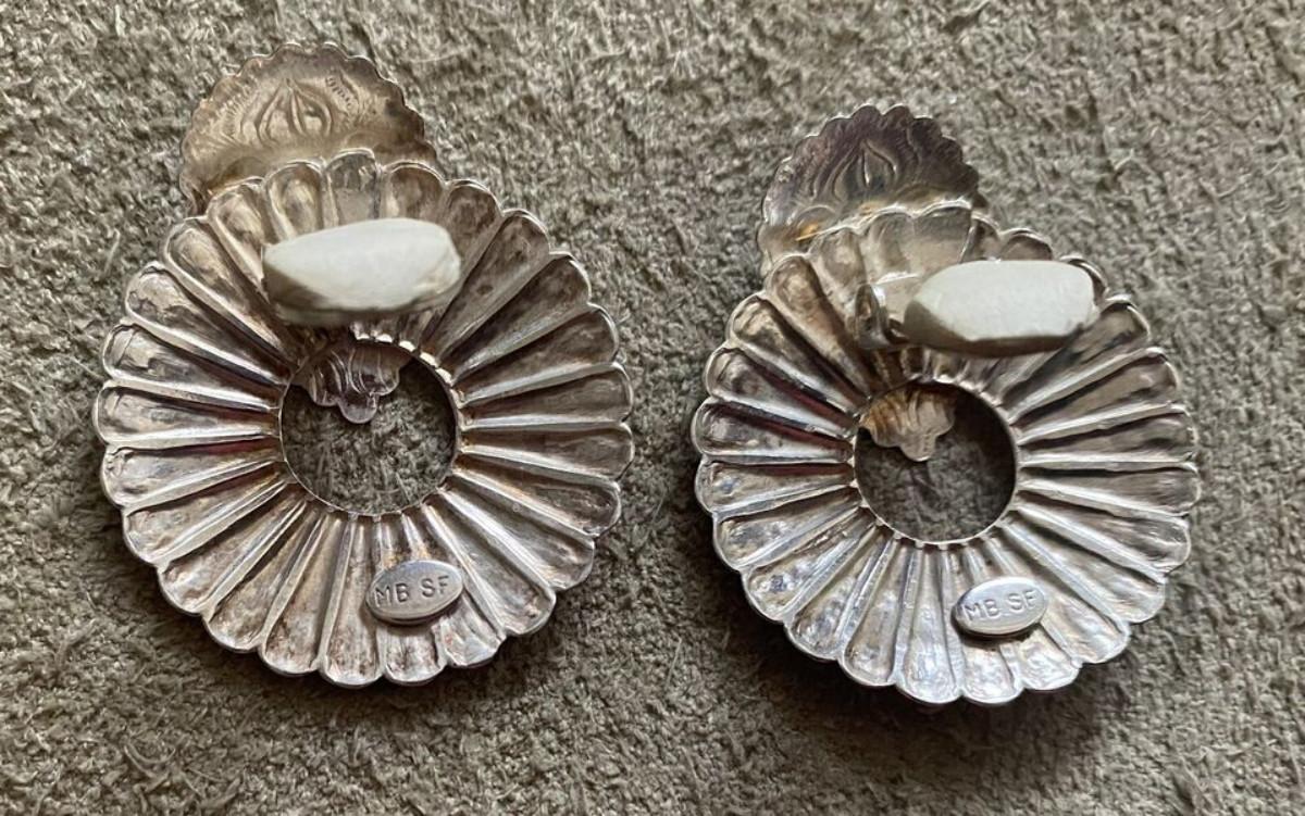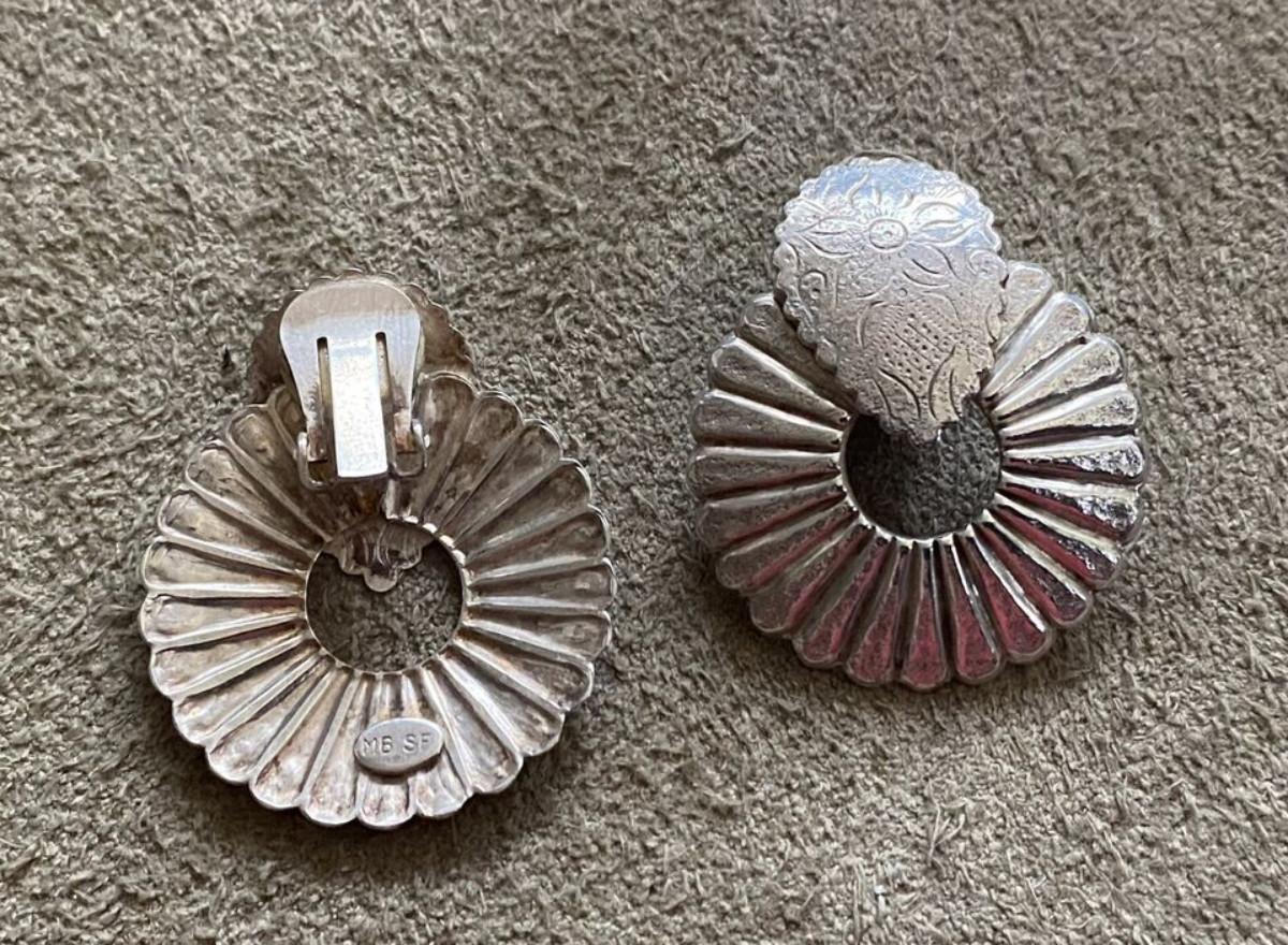 vintage hammered silvertone clip earrings from designer Marjorie Baer..producing handmade pieces in the San Francisco Bay Area since th elate seventies..Good condition on this estate find...38mm...12.3 grams...Hallmarked MB SF.