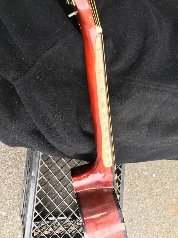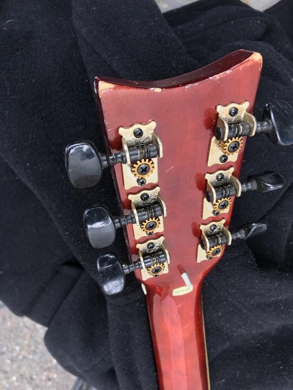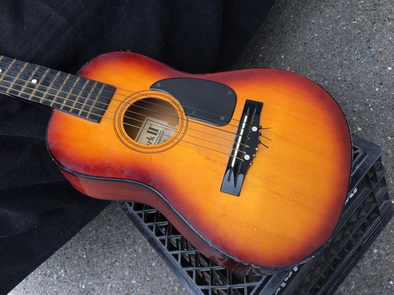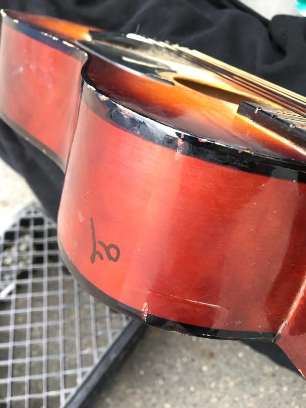 All original and in playable condition. Has great sound. Measures 31” long. Body measures 14” long by 7.5” wide at the top and 10.5” wide at the bottom. Delivery and shipping services available. Please contact us to request a quote.