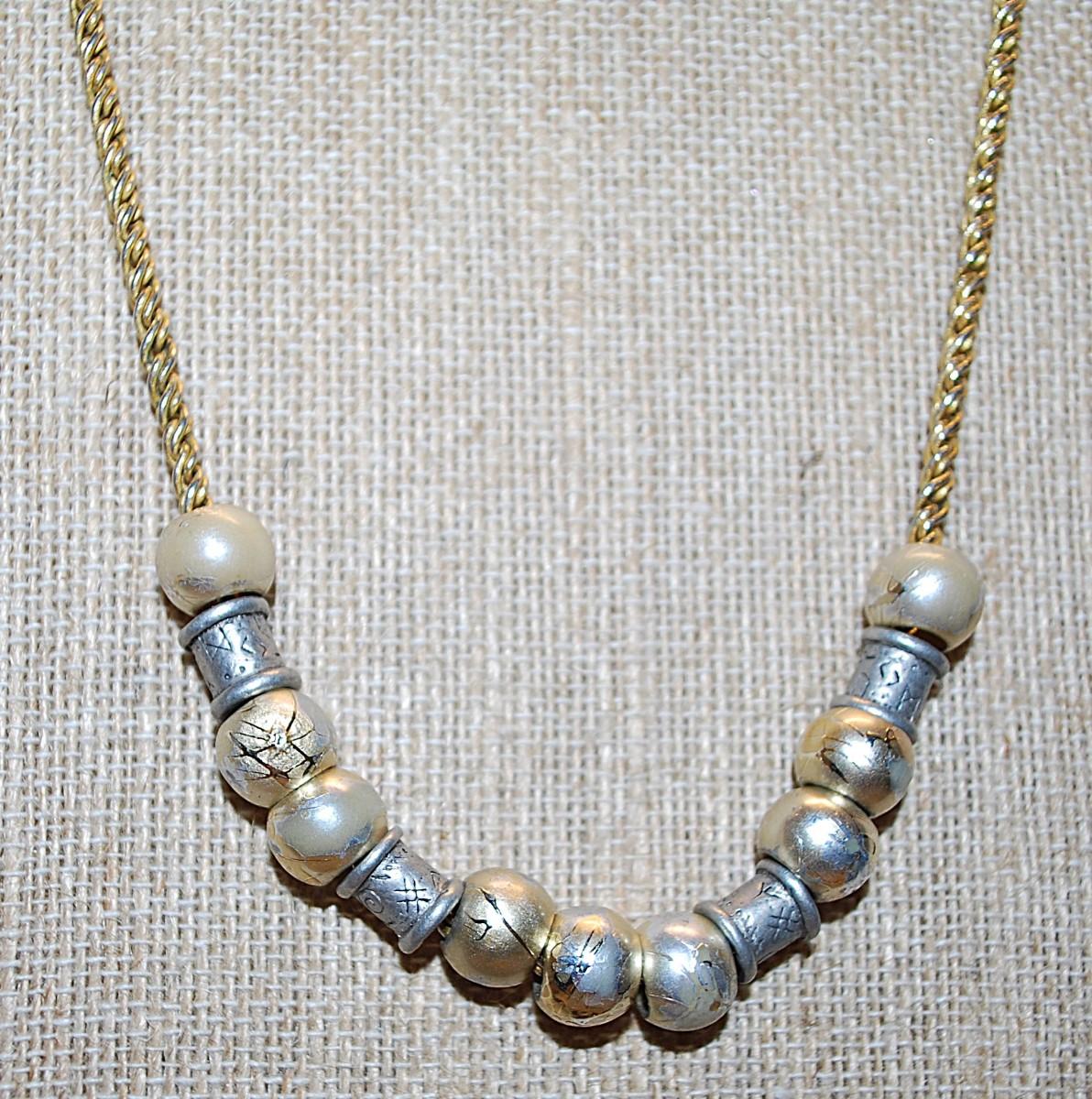 Vintage Marked "©LCi" Liz Claibourne NECKLACE with Silver Colored "Barrels & Beads" and Wire Loop Hook Clasp 18" L