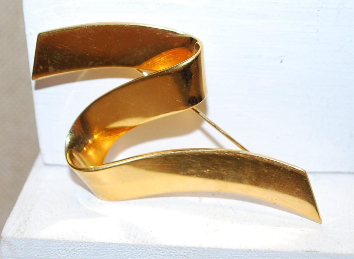 VINTAGE Marked ©Monet - Bright GOLD TONE "Swirl Ribbon" BROOCH (3" x 2")