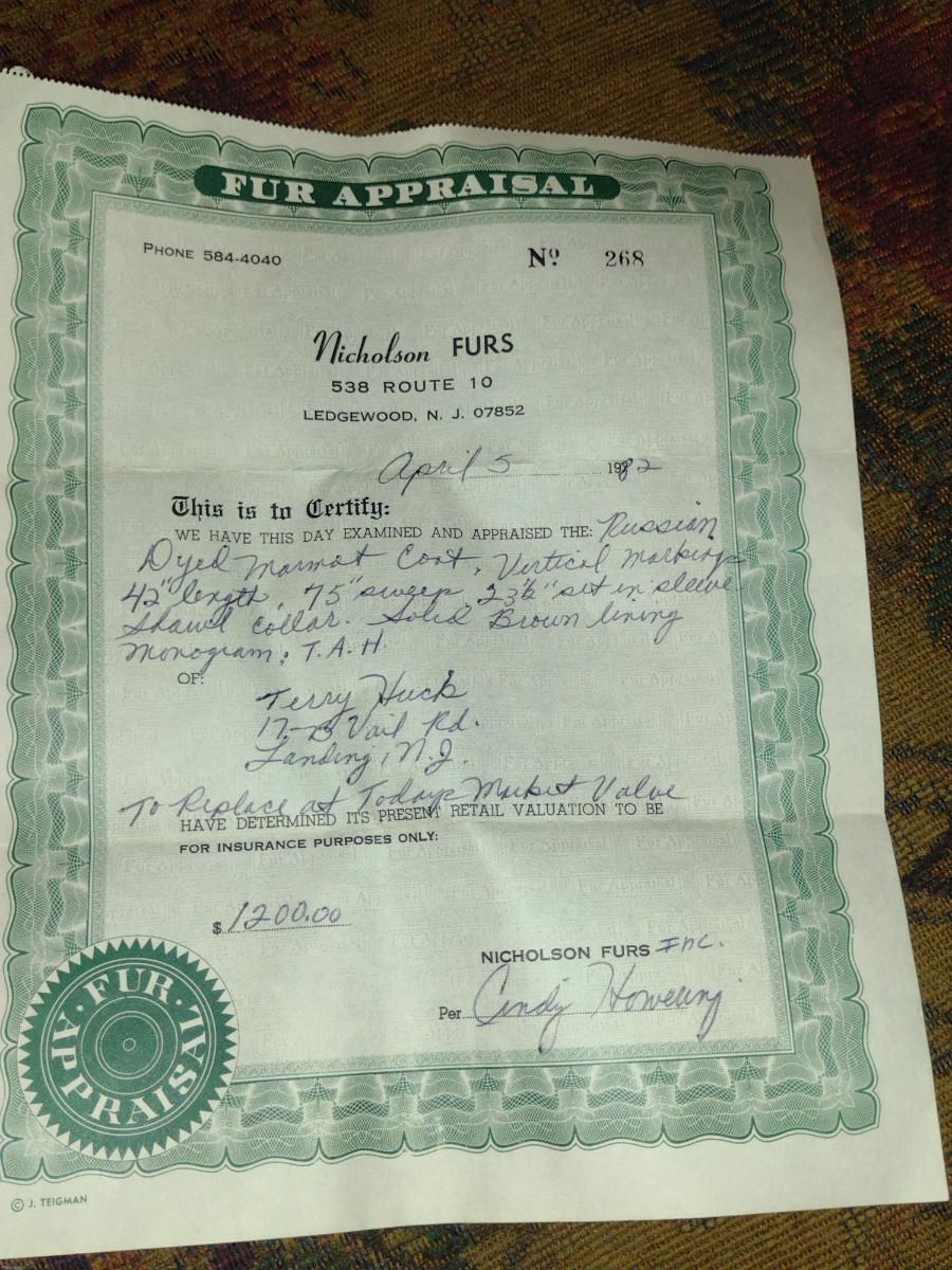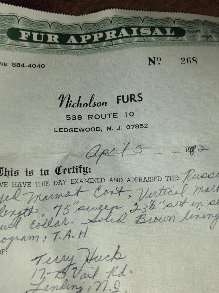 Vintage Marmot Fur Women's Coat. Approx size 12-14. Item is monogrammed.