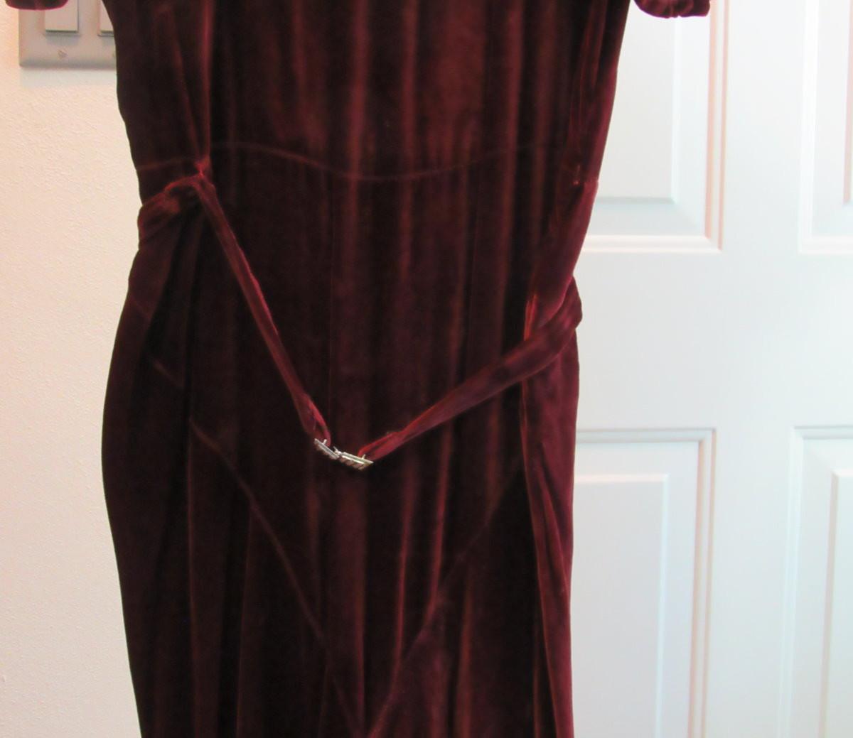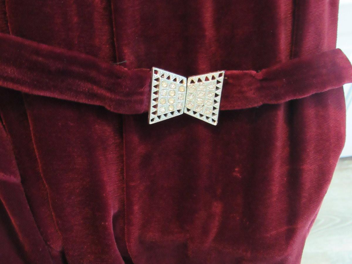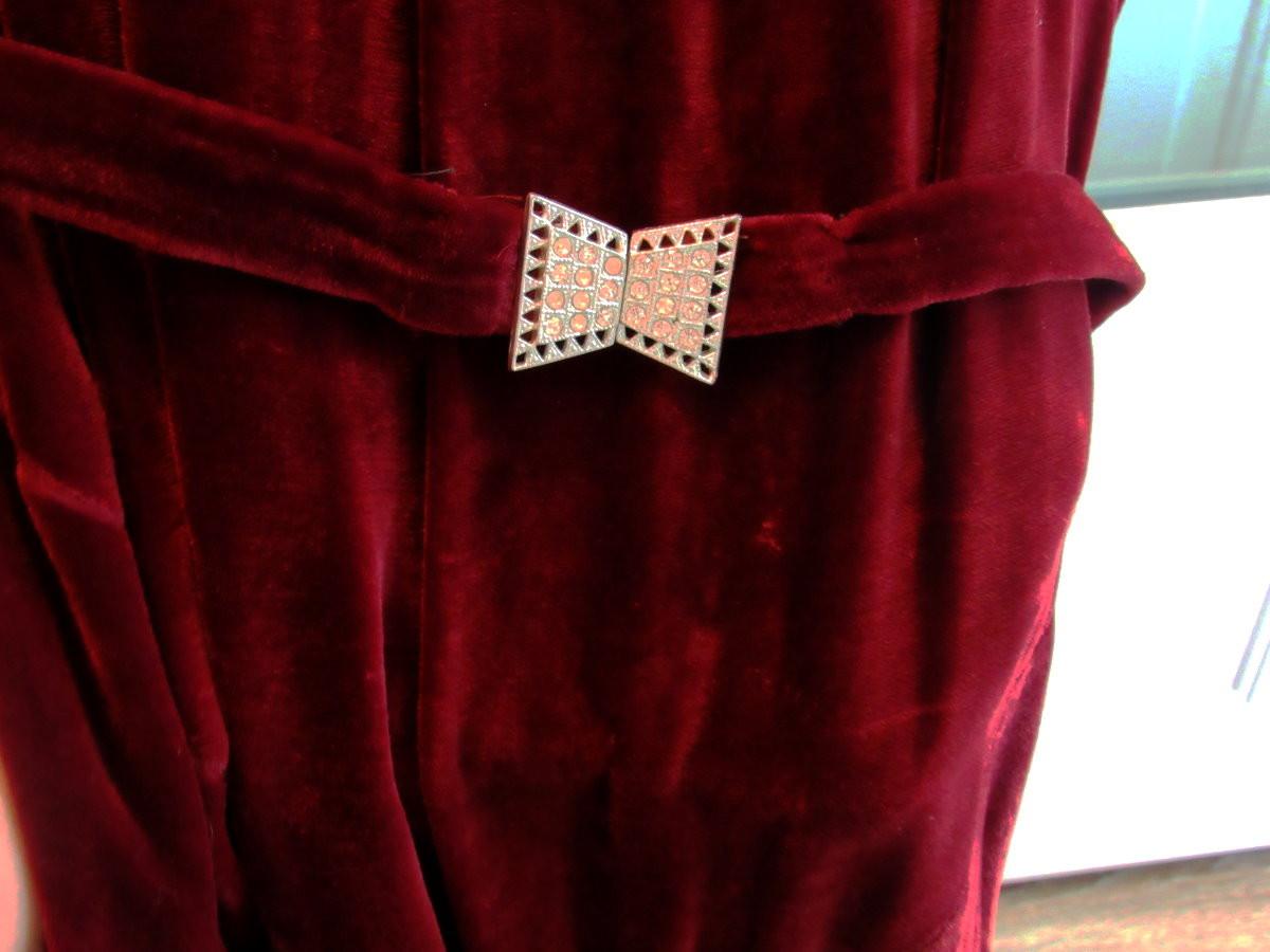 Lot 51: Vintage Maroon Velvet Dress With Rhinestone Belt Buckle In Belt