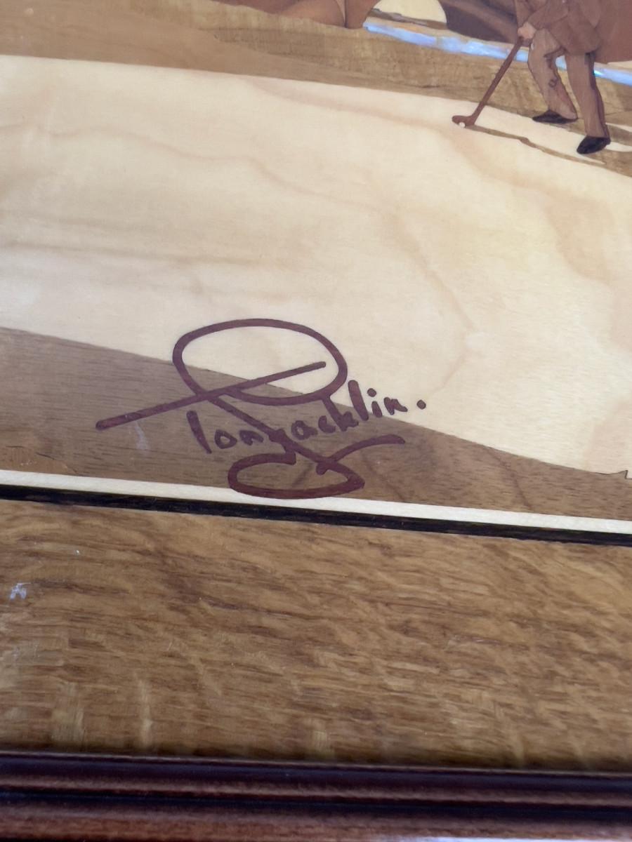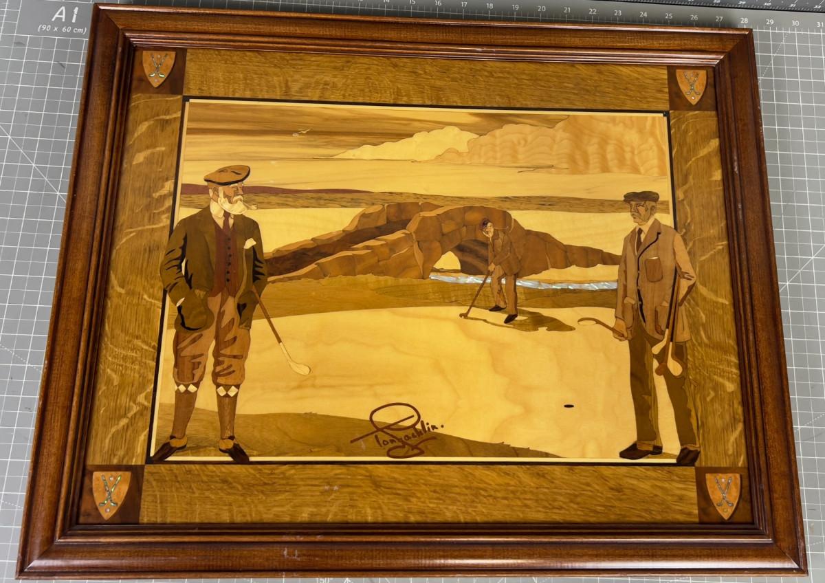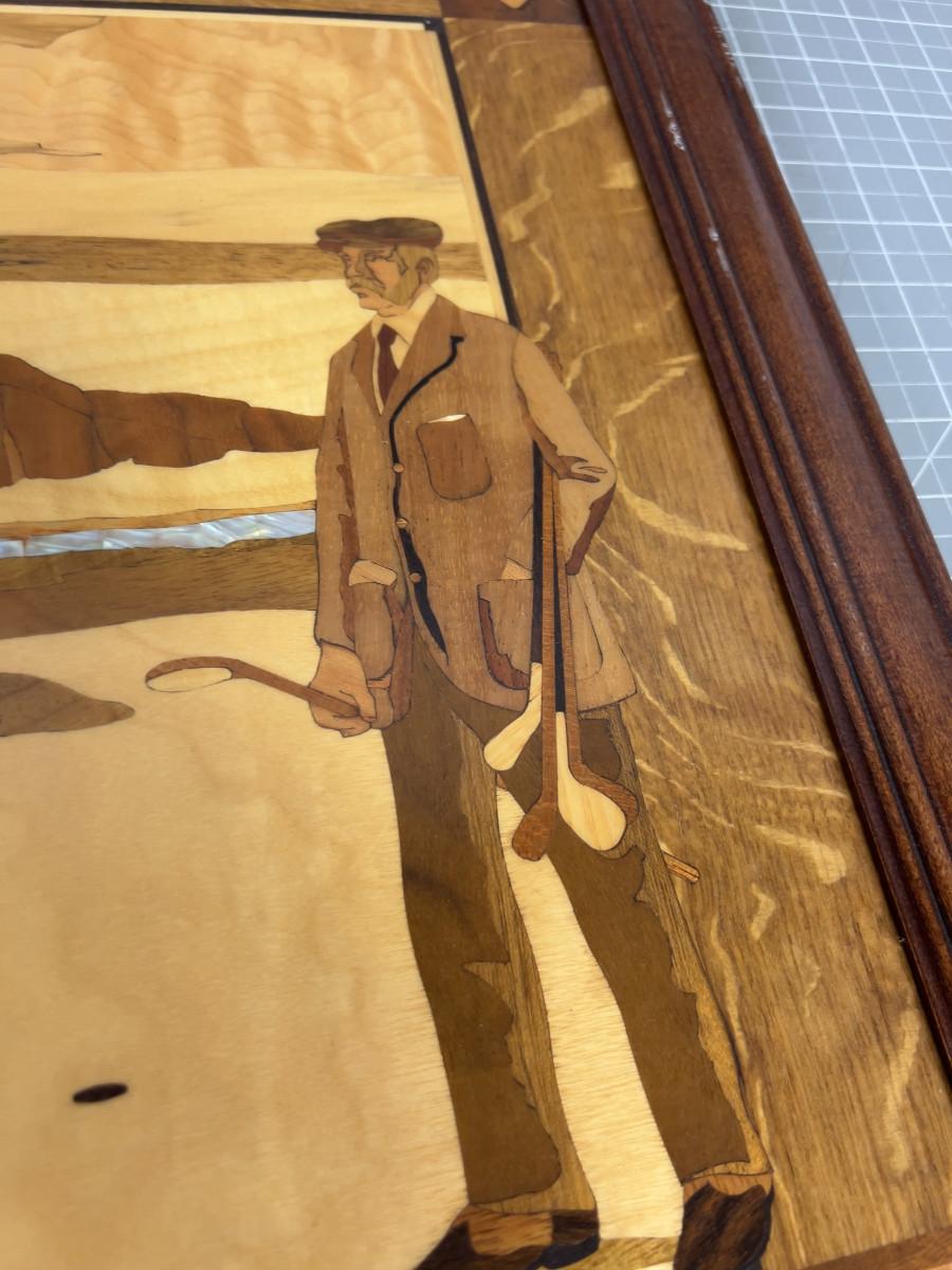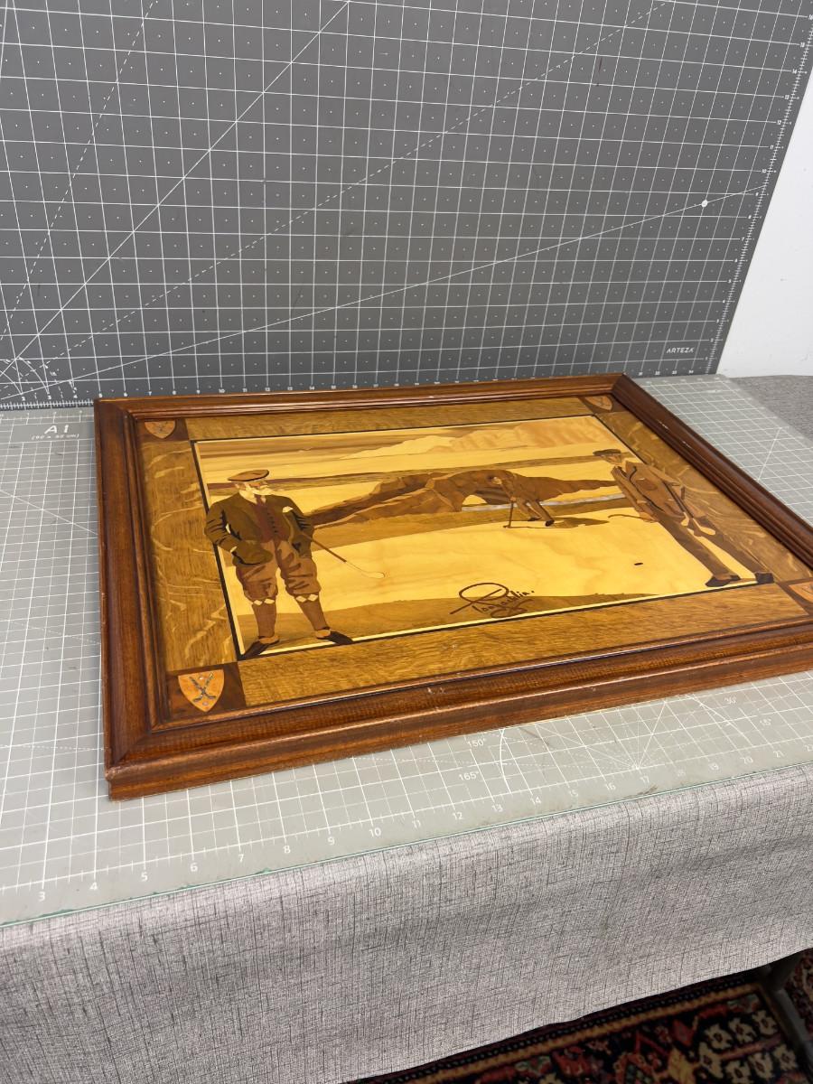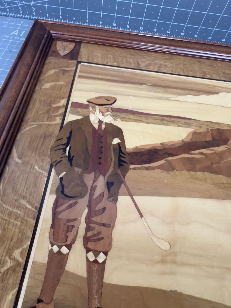 Vintage Marquetry Wood and Mother of Pearl, Golf Scene