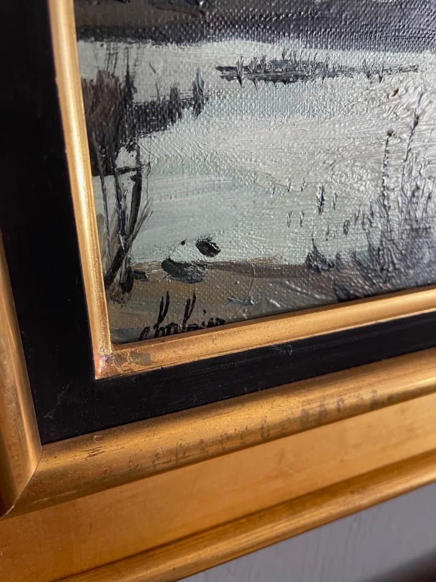 Vintage Marsh Painting 22x12.5
