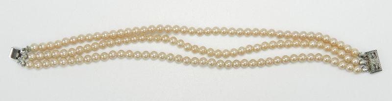 Vintage Marvella Pearl Bead Three Strand Bracelet