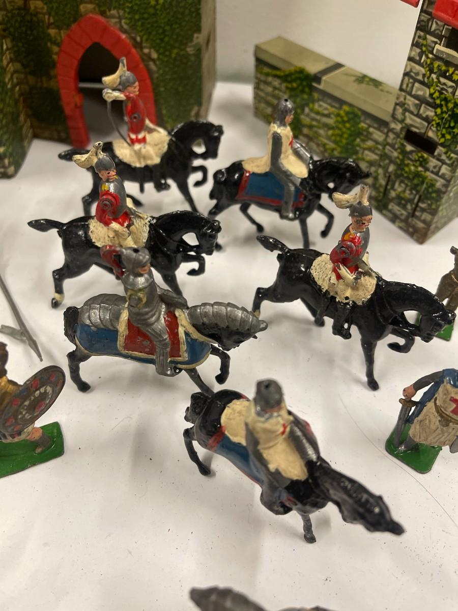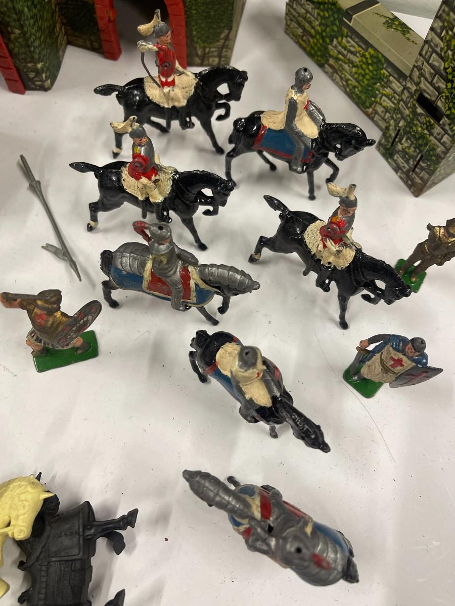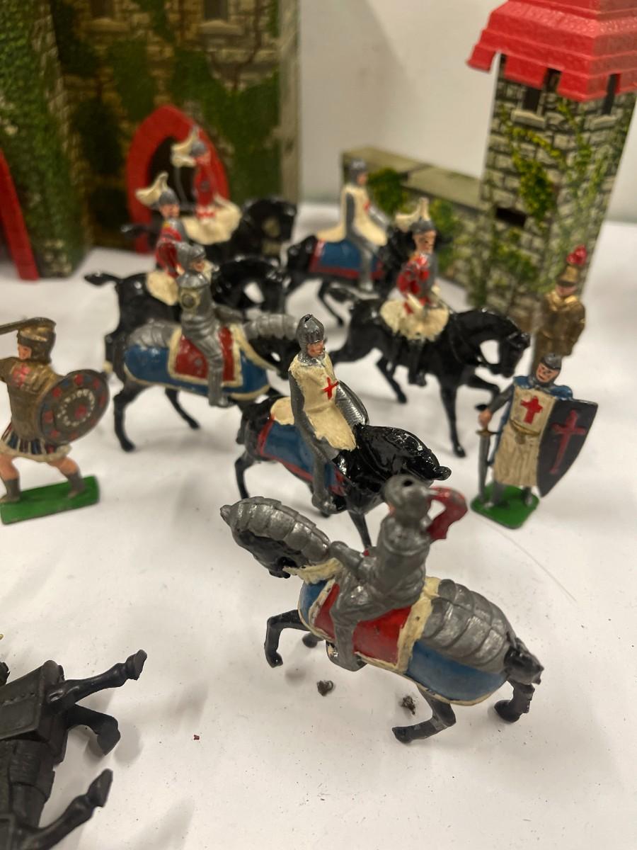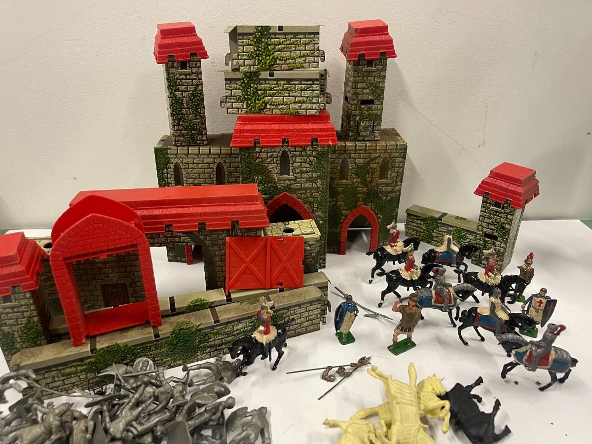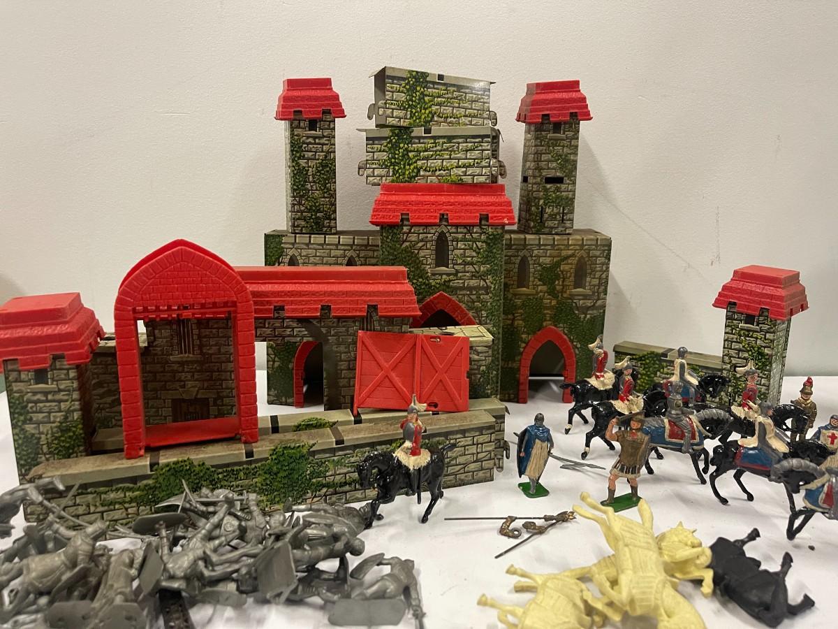 Vintage Marx Medieval Castle Fort Playset. Includes everything shown. Also includes some extra random plastic soldiers.