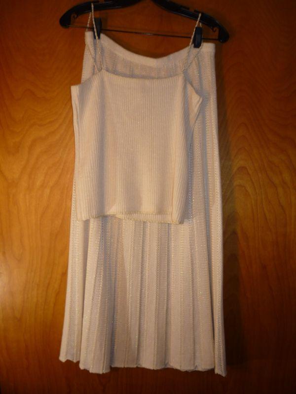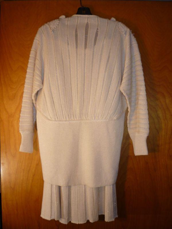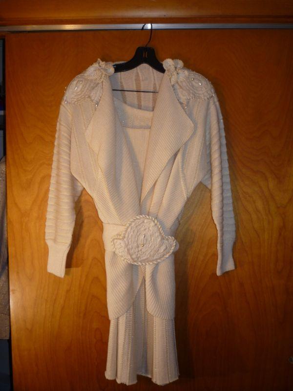 Lambs wool blend - vintage Mary Farrin of London designer -- Made in Malta - embellished jacket with coordinating camisole and skirt -- metallic thread. Size M