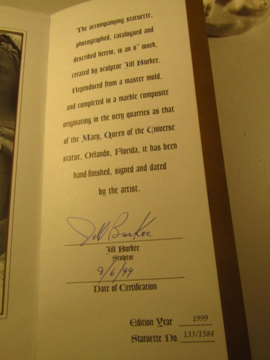 Vintage Mary, Queen of the Universe Statuette (Signed, Numbered, Dated). Marble composite. Created by Jill Burkee.