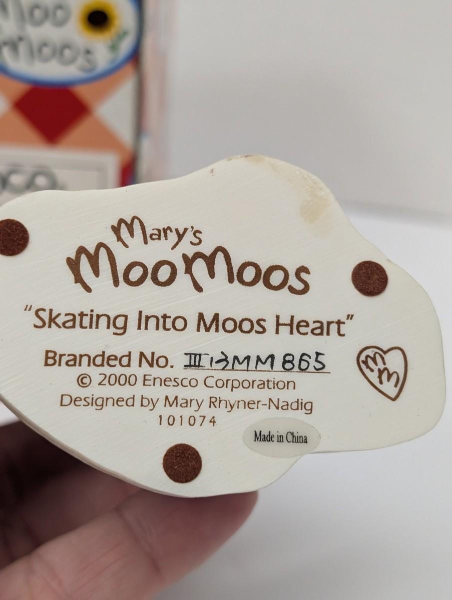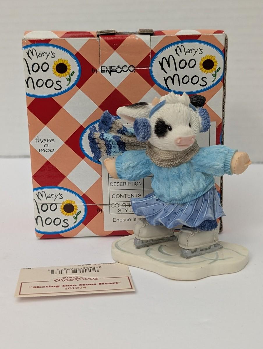 Vintage Mary's Moo Moos Figurine 2000 "Skating Into Moos Heart" W/Box