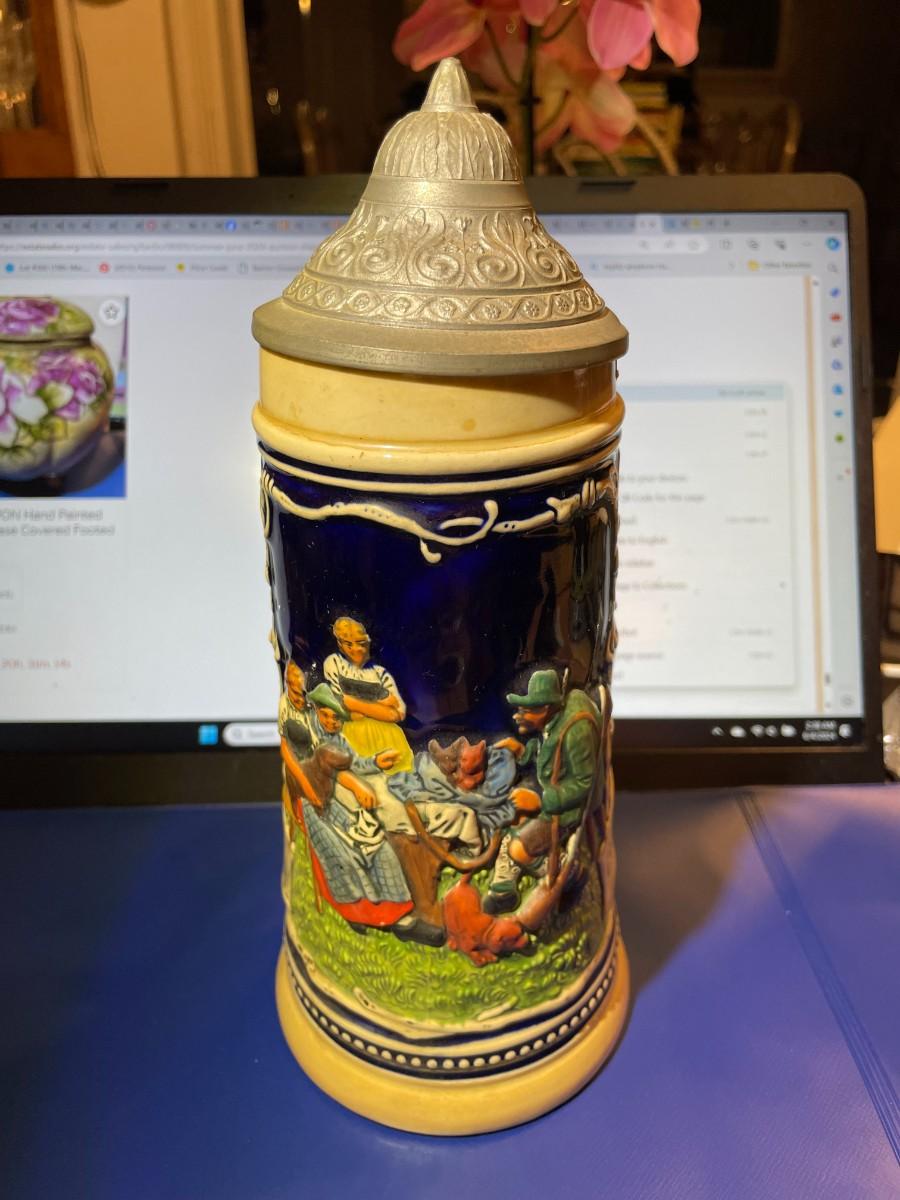 VINTAGE MARZ REMY BEER STEIN WITH LID #2863 FAMILY GATHERING 9" TALL IN GOOD PREOWNED CONDITION. $15 DOMESTIC SHIPPING.