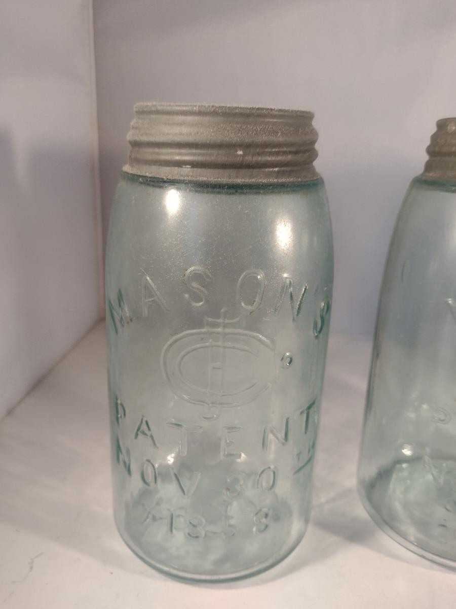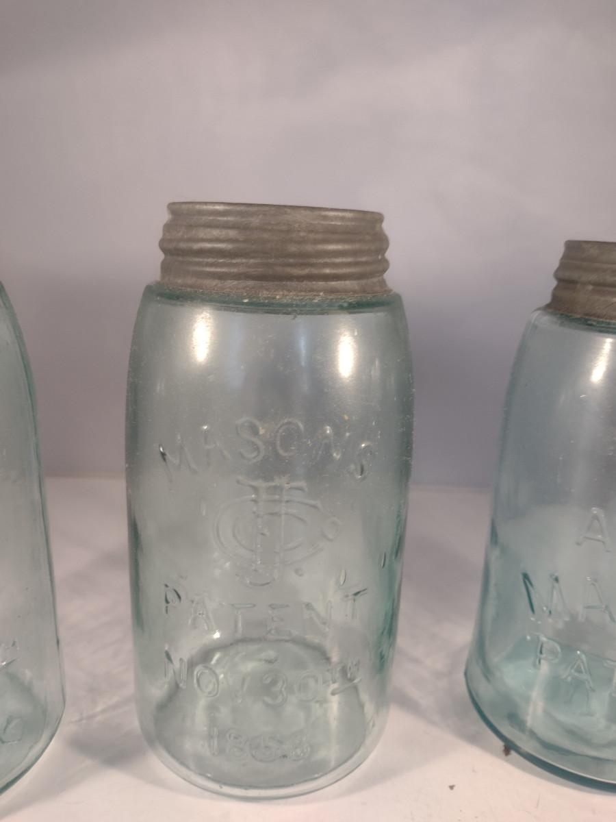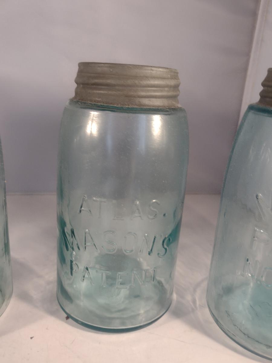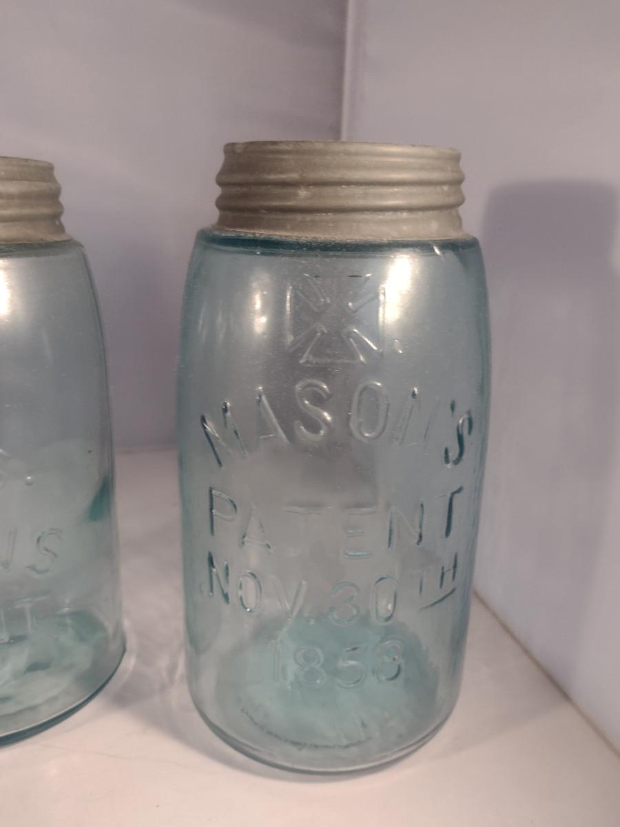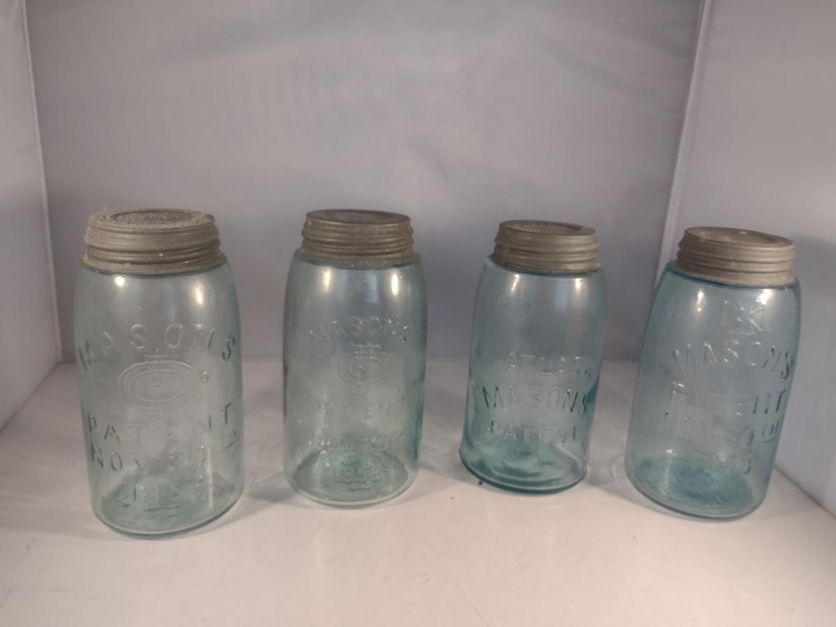 Vintage Mason Blue Glass Jars with Metal Lids- Quart Size- Four Pieces (#1)