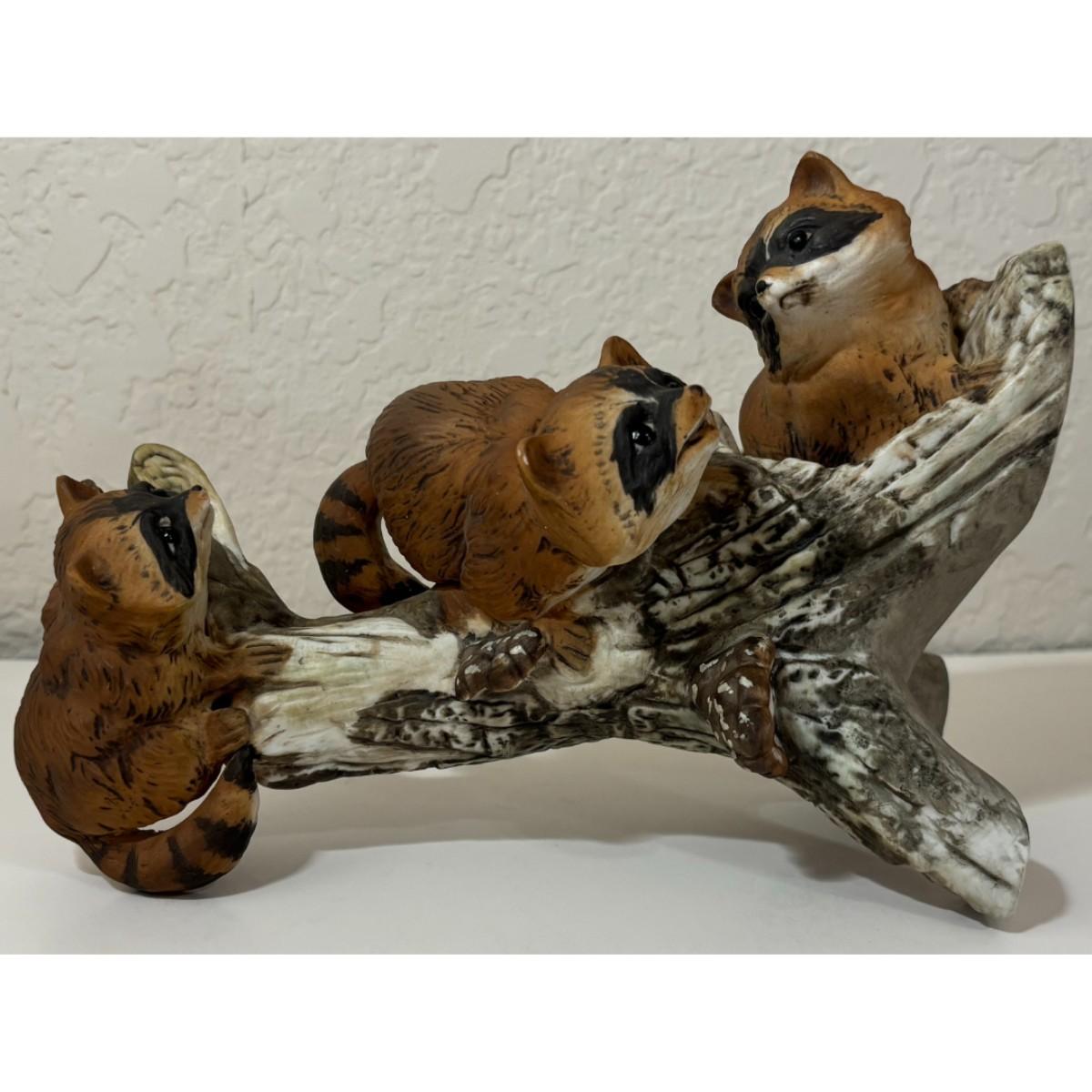 Vintage Masterpiece By Homco Raccoons Ceramic Figurine Made In Mexico