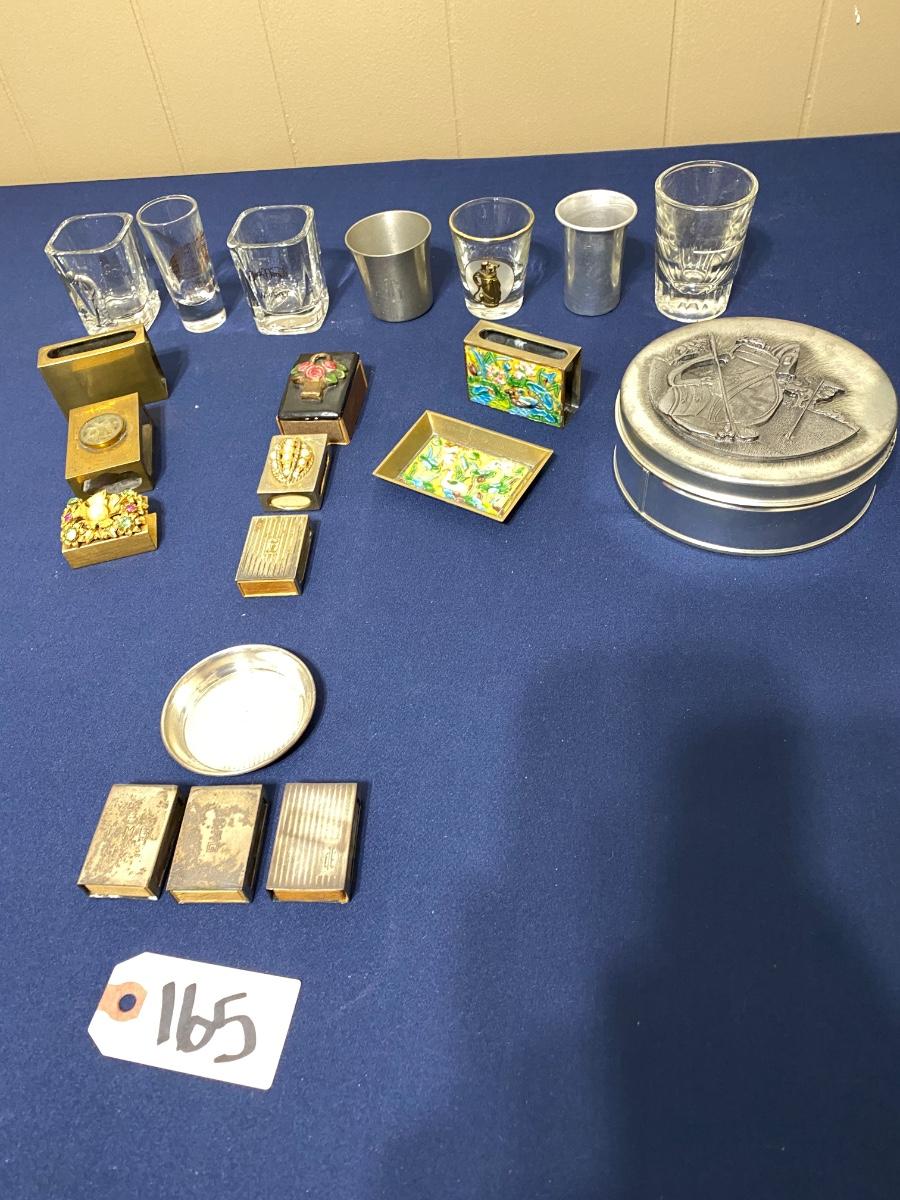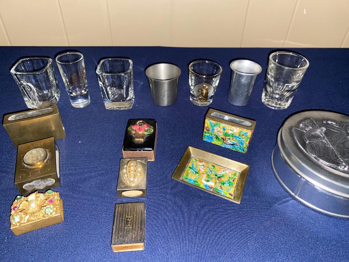 Misc Vintage Match Box Covers, Shot Glasses, and More As Pictured