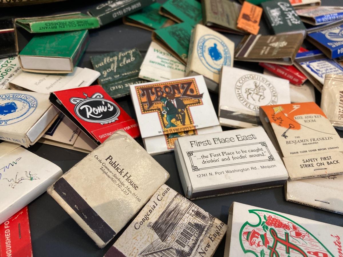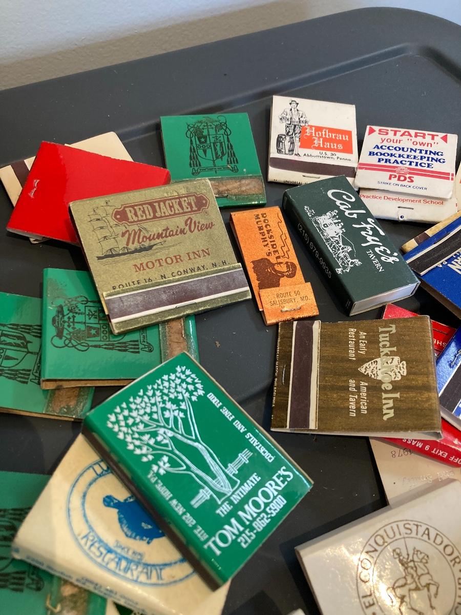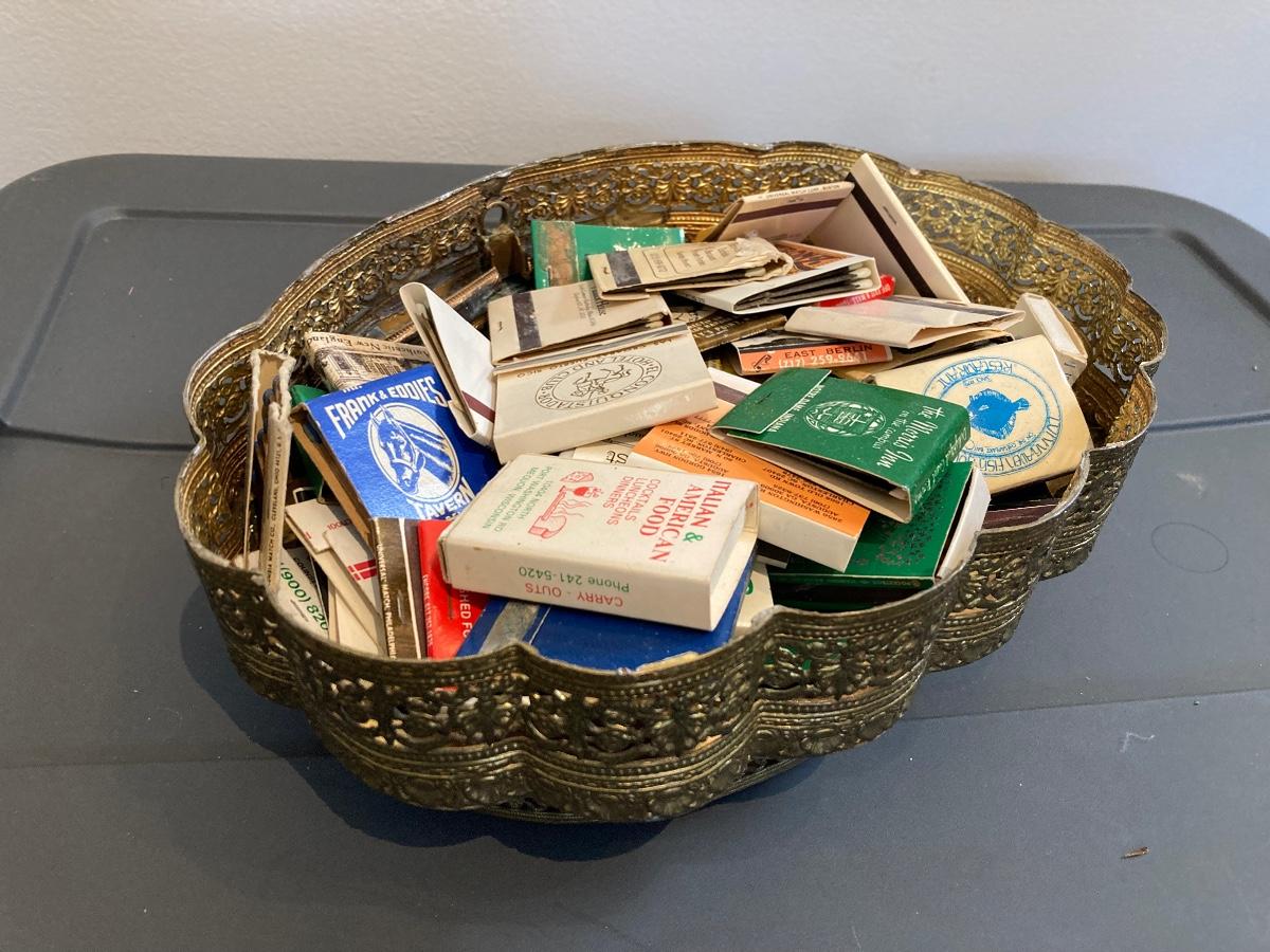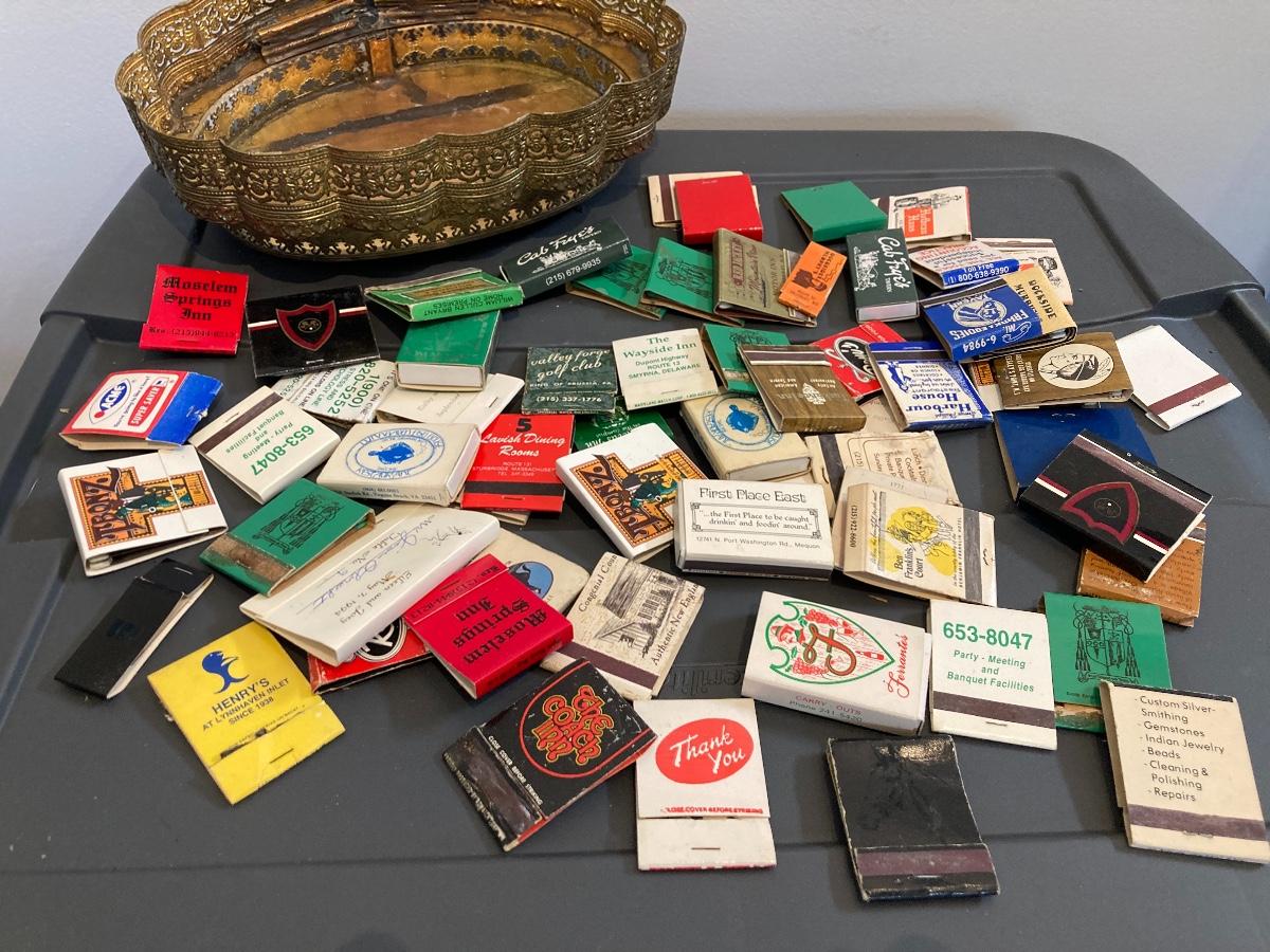 Vintage Matchbook Collection with 60+ and Metal Bowl