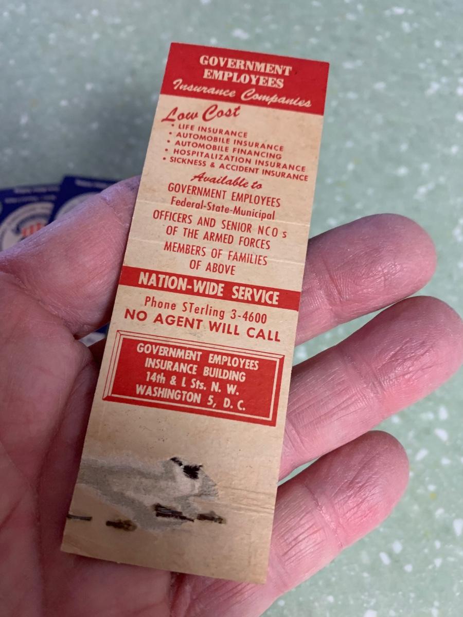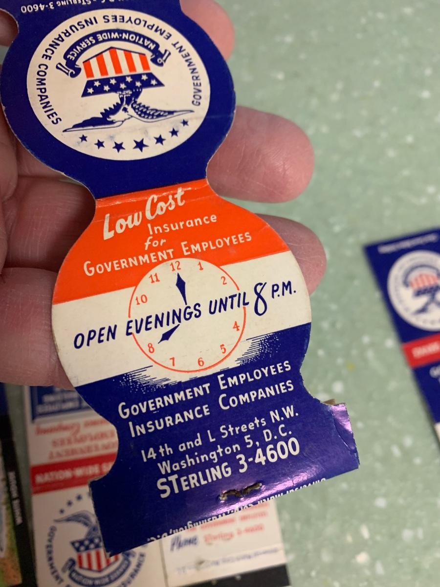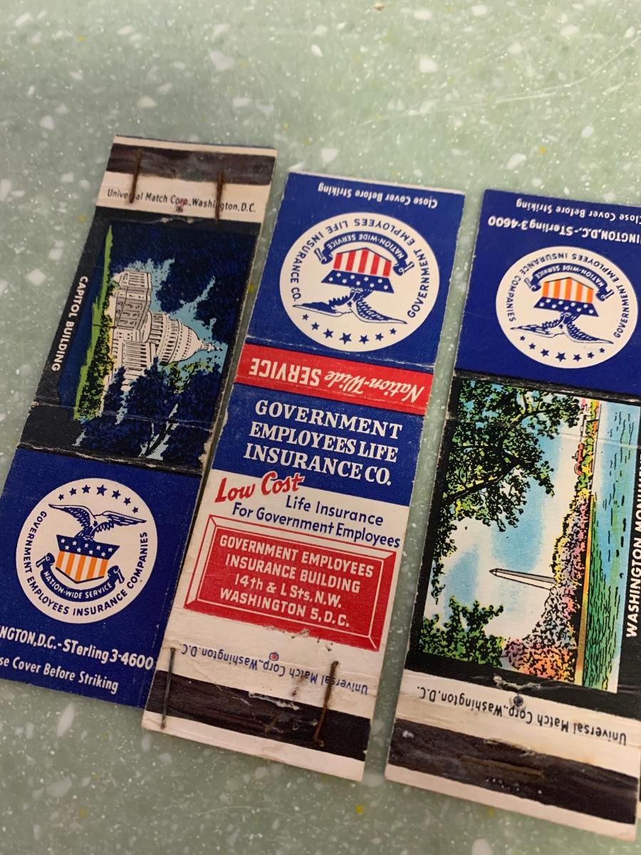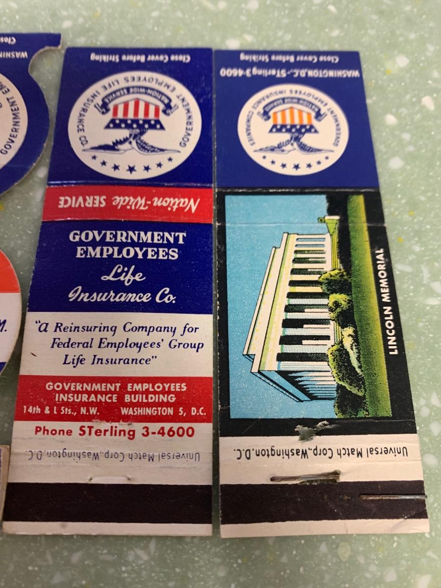 Vintage Matchbooks Government Insurance Washington DC GEICO