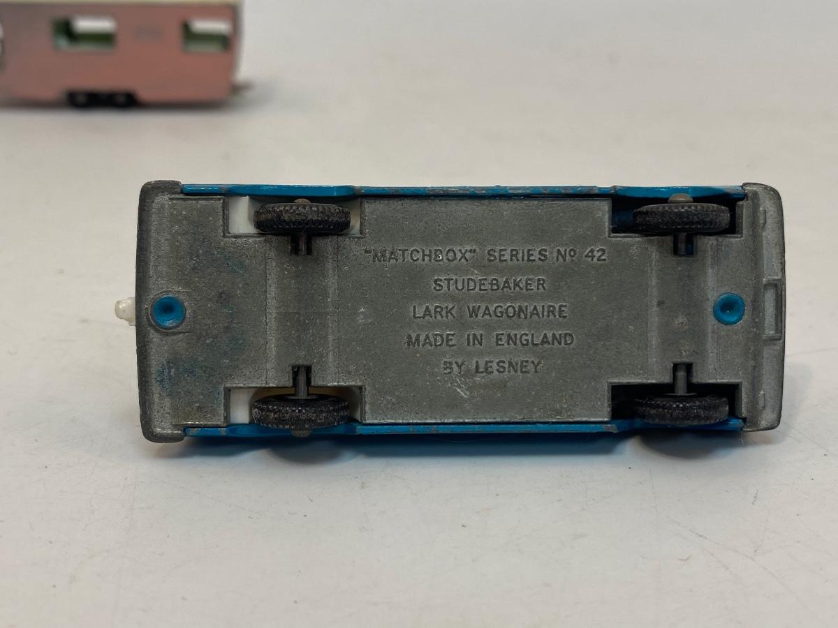 Vintage Matchbox Series Lesney Diecast #42 Studebaker Lark Wagonaire & #23 Trailer Caravan. Both are in play worn condition. There is cracking to the plastic top of caravan as well. See photos.