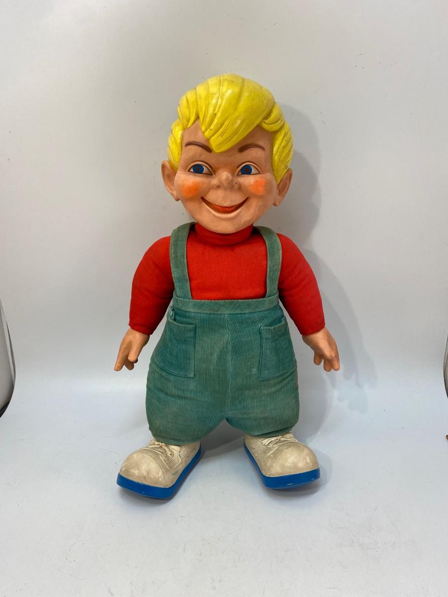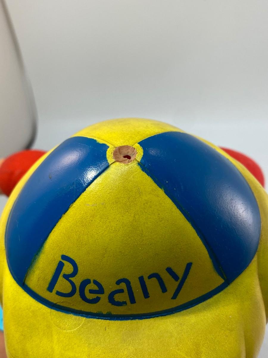 Vintage Mattel Bob Clampett Beany & Cecil Doll 1960s. Originally a talking doll but the string has broken off, no way to test. Missing hat propeller. Other than surface dirt and above mentioned defects the doll is in good condition, would display nice.