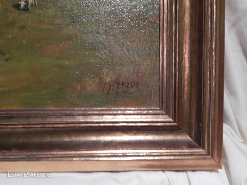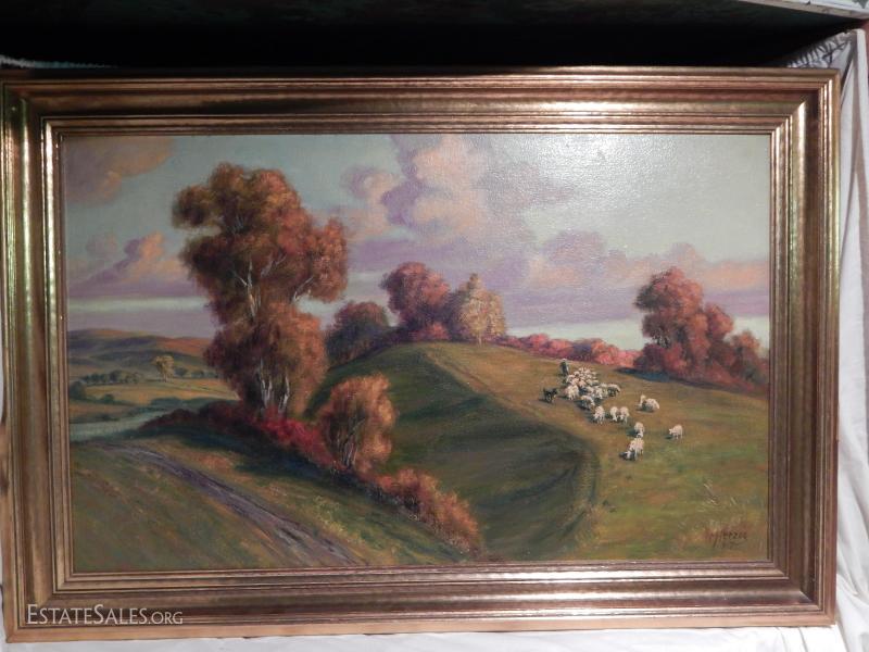Vintage Max Herzog Oil Landscape Sheep in Field Lot # 32