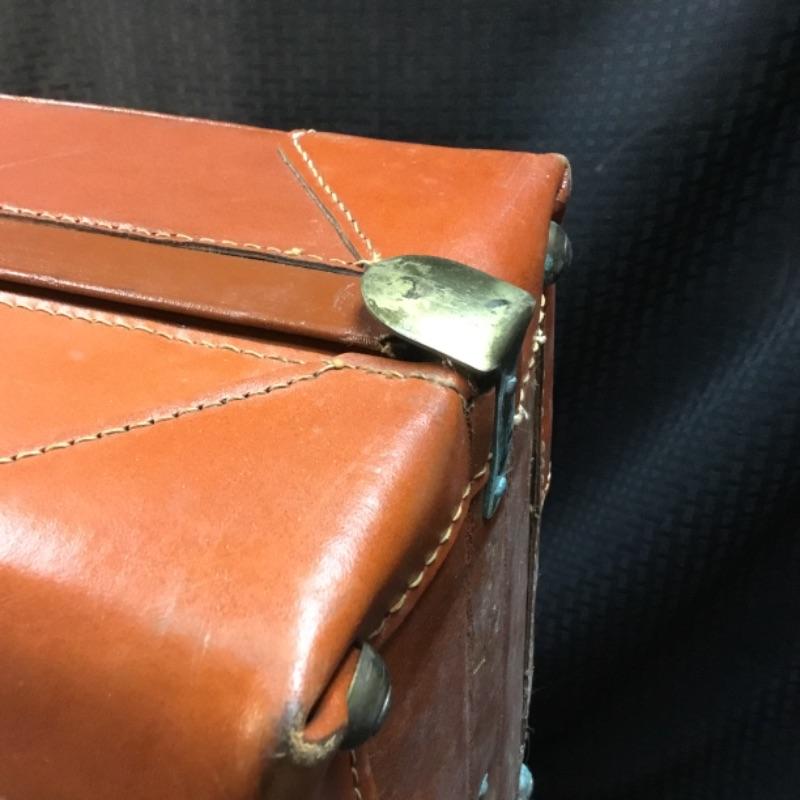 Suitcase measures approximately 8 1/2“ x 24“ x 18 1/4“. Overall in decent condition for its age. It has scuffs, scrapes, scratches, and a small sequence of loose stitching on one of the corners; see pictures for condition.