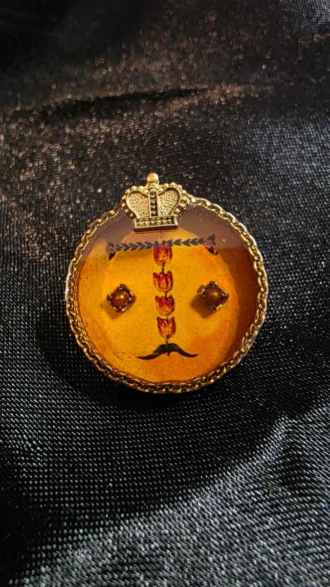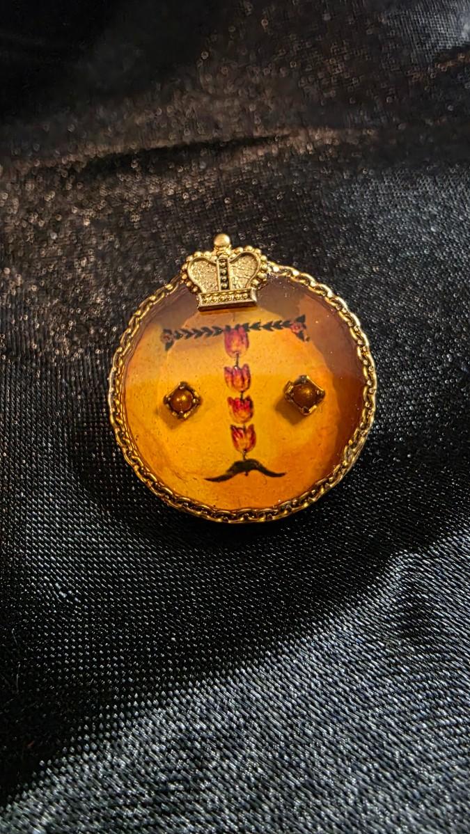 Imagine it pinned to a winter coat during evenings of quiet conversation, the cameo catching firelight like a secret shared, or resting against silk where it becomes the quiet heartbeat of timeless femininity. From the tradition of Maxine’s celebrated floral cameos, its colors remain vivid and its gold tone rich, a piece that turns the lapel into a canvas of whispered beauty.