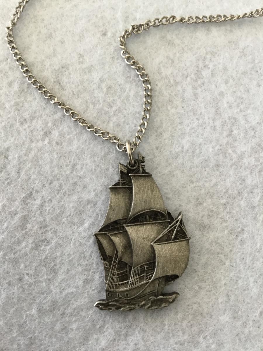 Vintage Mayflower Plymouth, rock, Landing pendant, and chain necklace