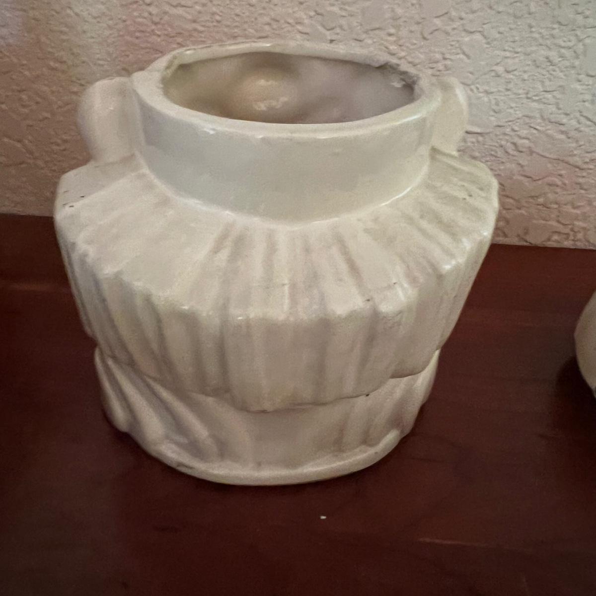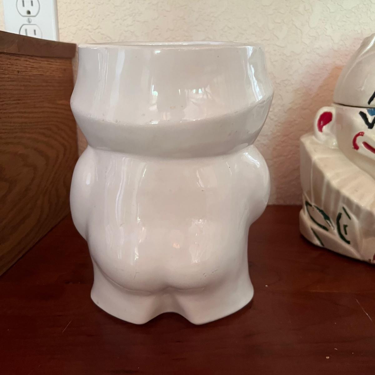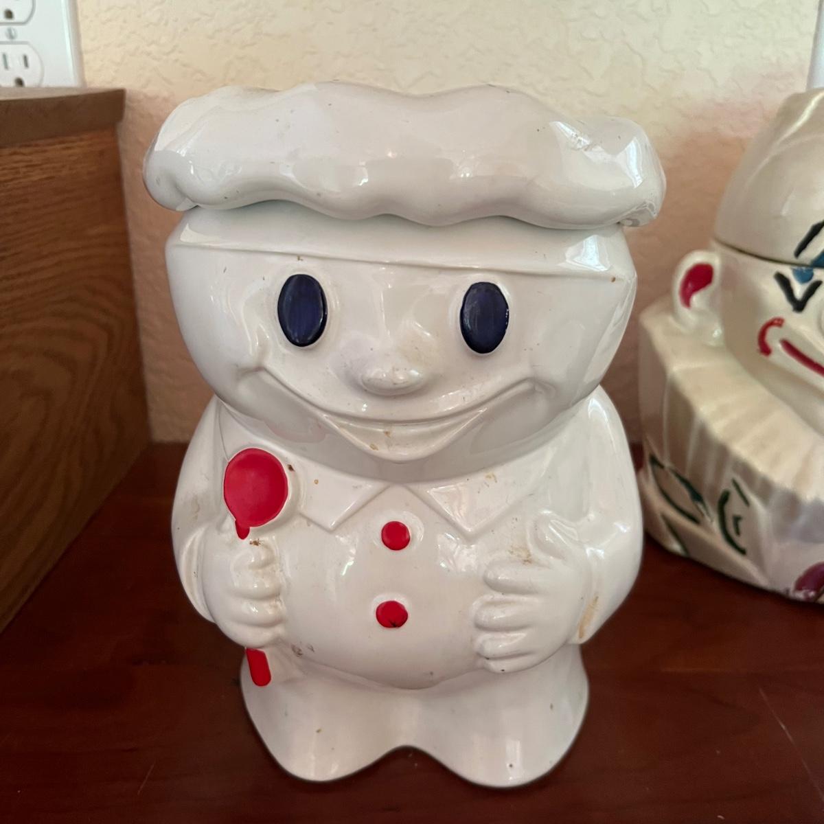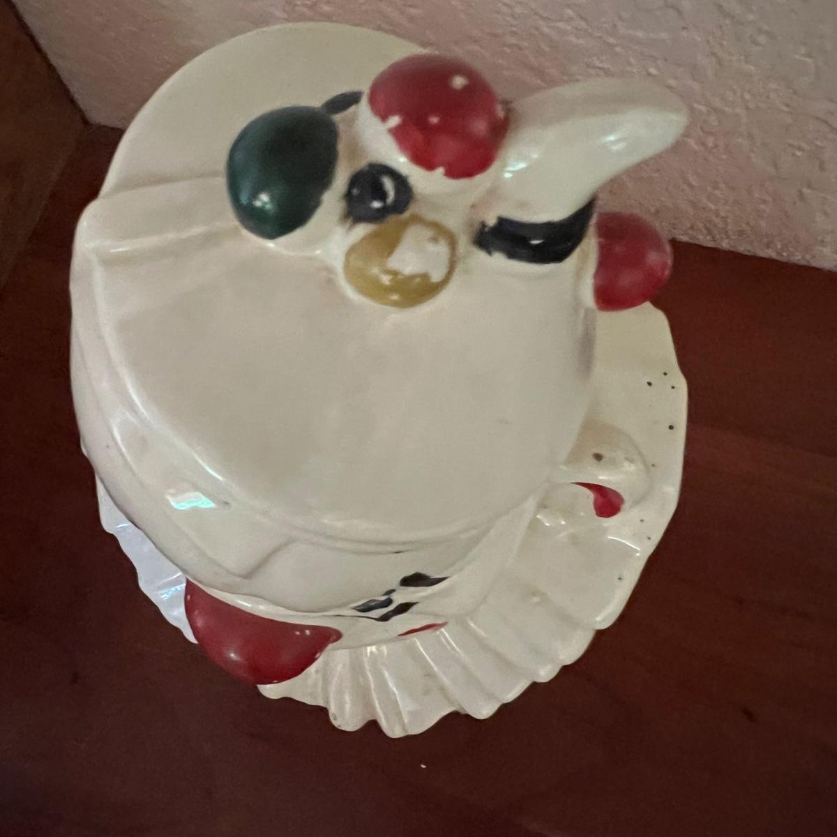 Bob the Baker and Clown McCoy ceramic cookie jars; note that there is only the McCoy makers mark on the Clown cookie jar. The other has the number 185. Some paint has rubbed off here and there on the clown jar, see images.