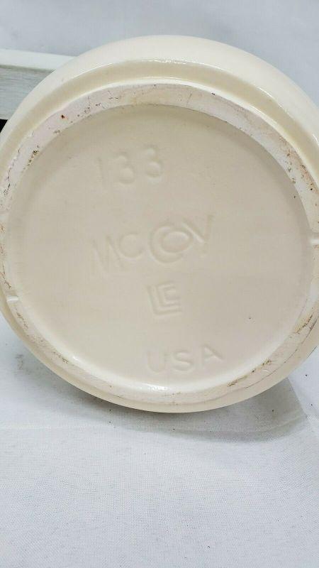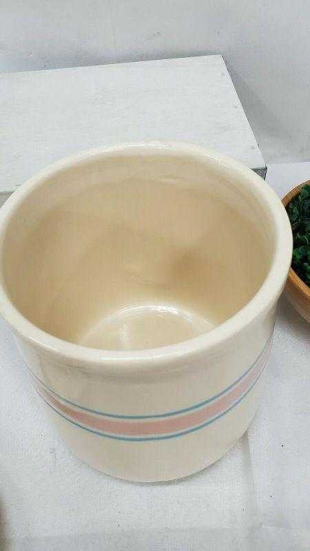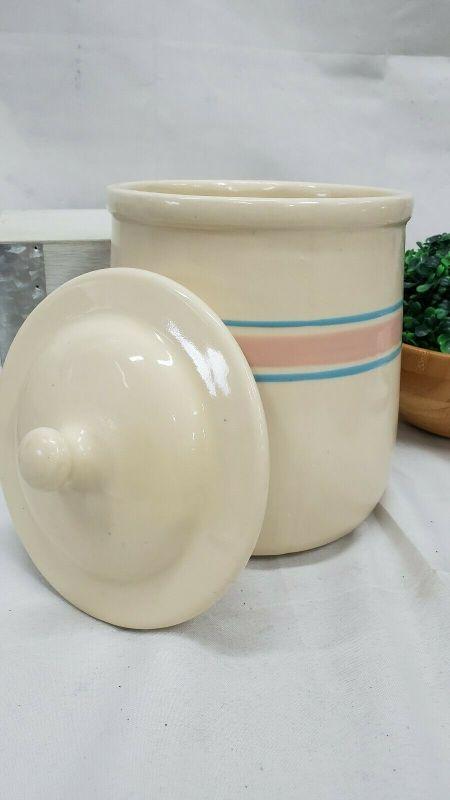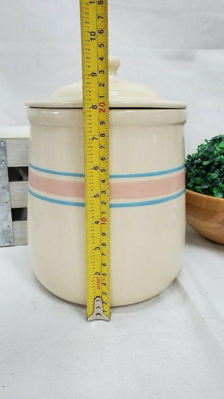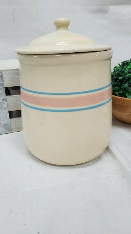 Vintage McCoy Crock Canister w/Lid, Cream Pink Blue Striped, #133 Pottery