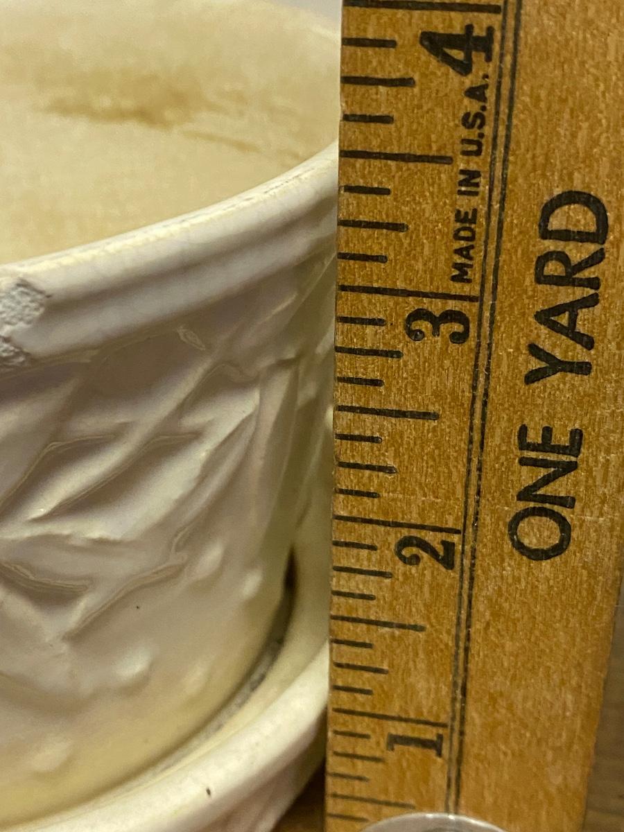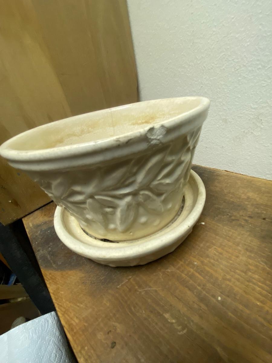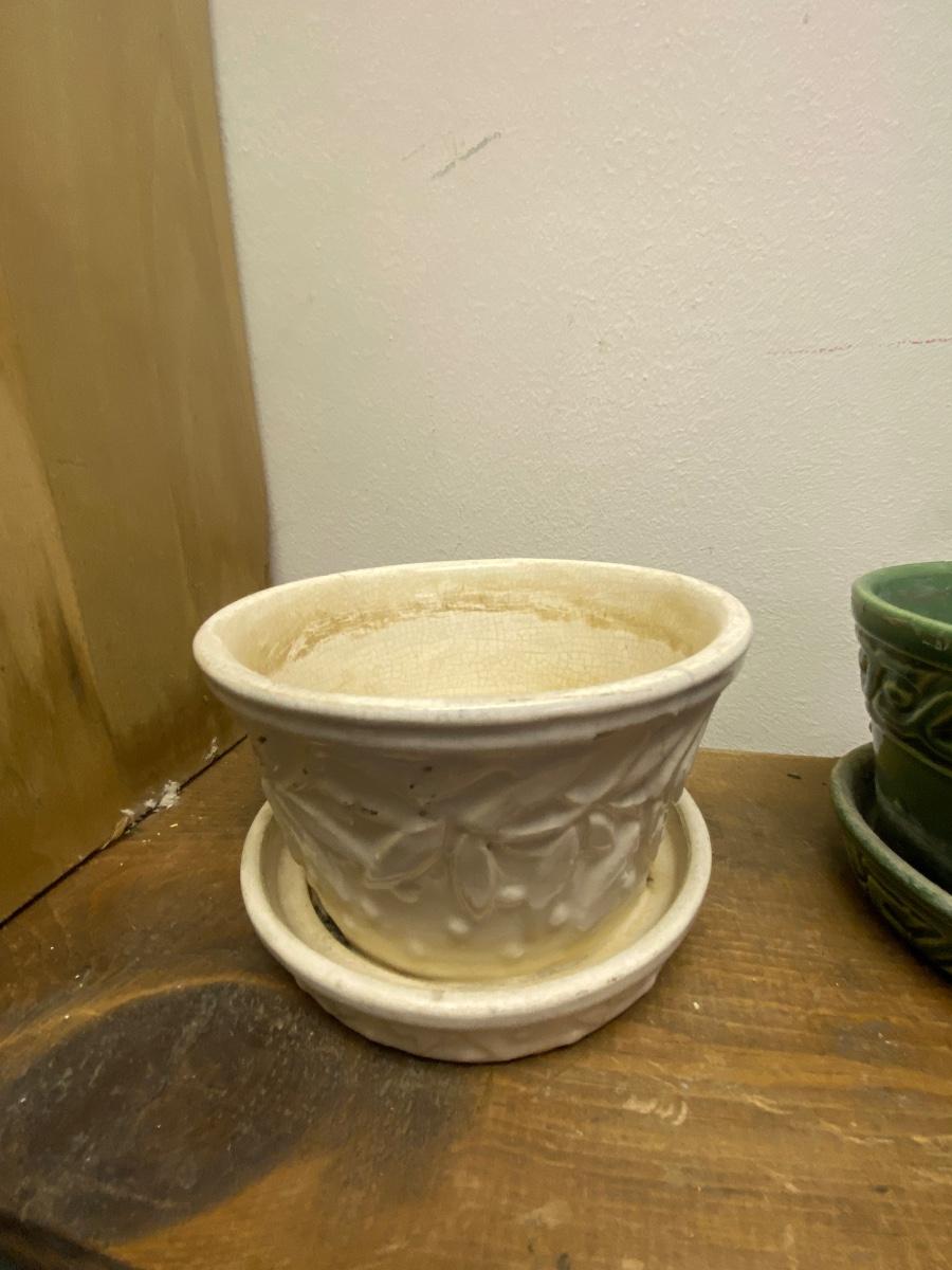 Pair of vintage planters made in the USA by McCoy. Great addition to any garderner's collection. Small chip on white pot rim.
