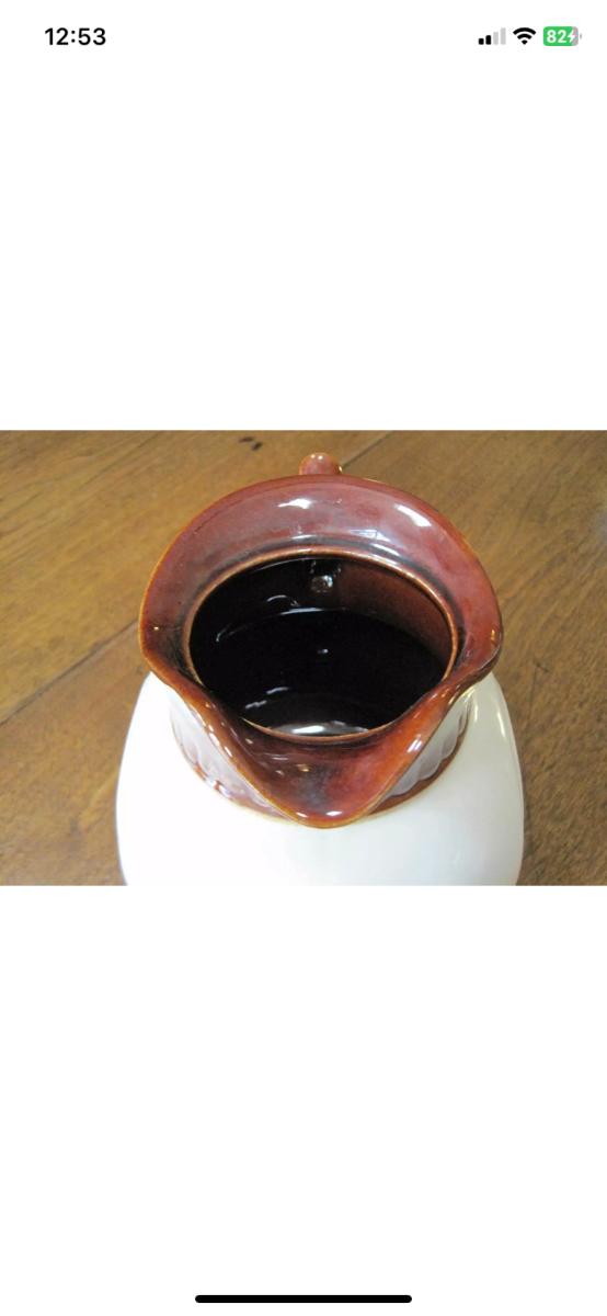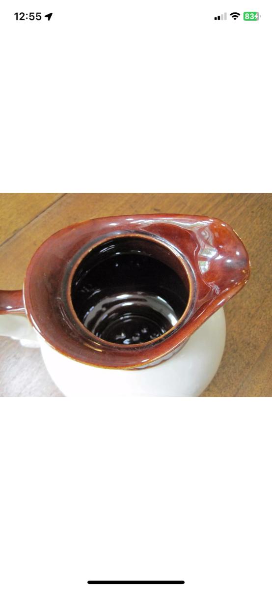 Vintage McCoy heavy and large lidded brown/ivory white pitcher, marked #202 USA