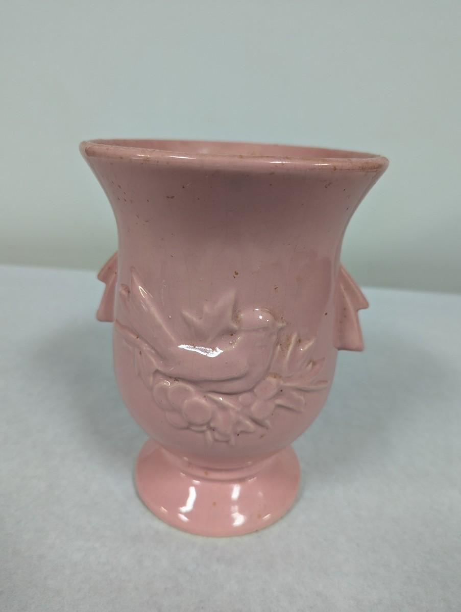 Vintage McCoy Pink Large Vase With Cardinal Bird