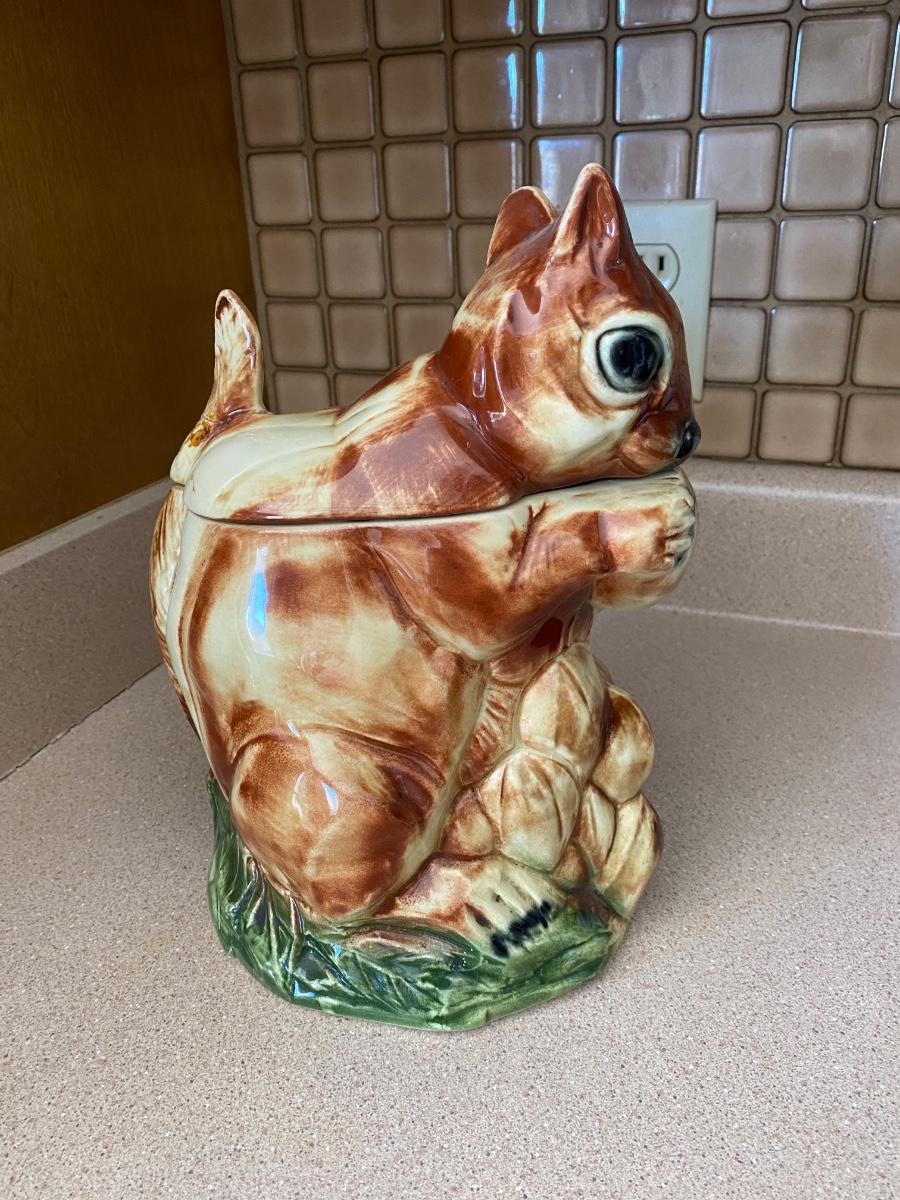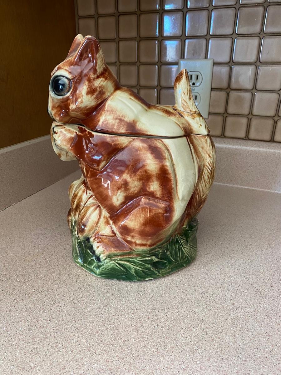 Collectible Vintage McCoy squirrel cookie jar. Tail has been repaired. Otherwise, in very good vintage condition. Approx 10-12” h