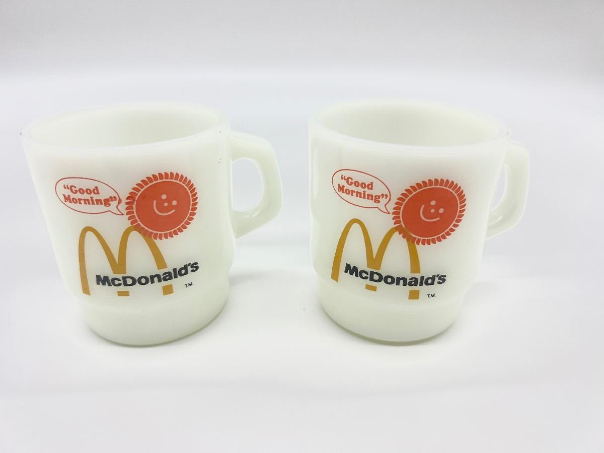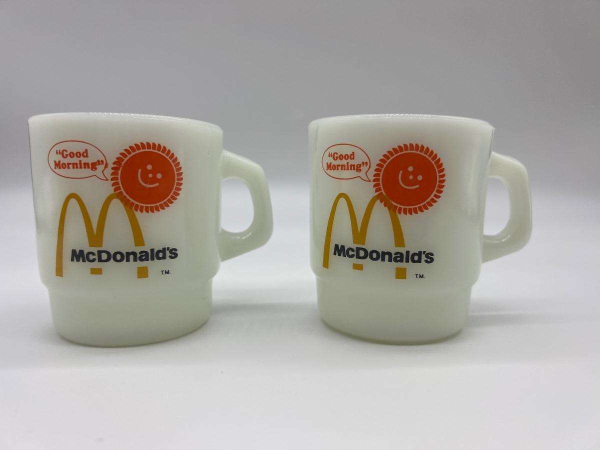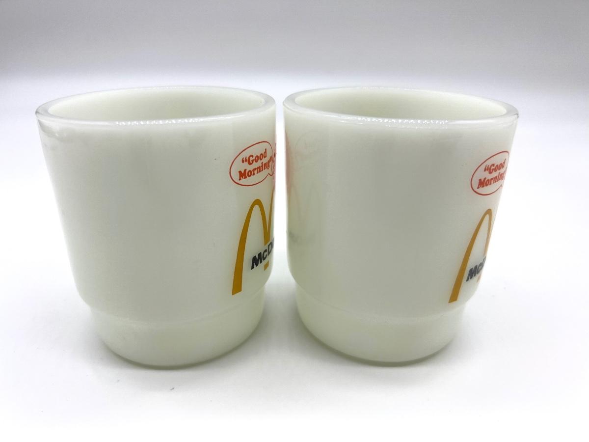 Pair Of Vintage Anchor Hocking FireKing Milk Glass McDonalds Mugs