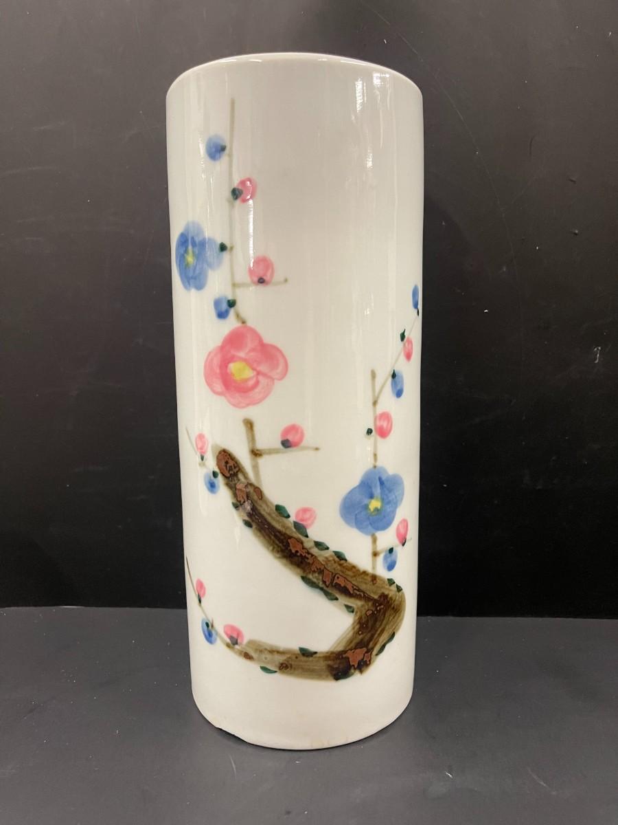 Vintage MCI Japan porcelain cylinder vase, excellent condition. 11 1/2" x 4 1/2"