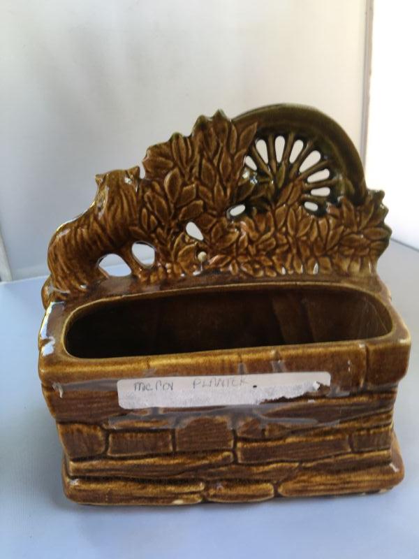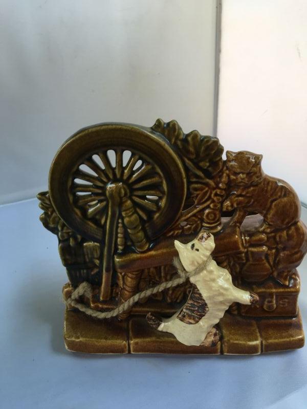 Vintage McKoy Planter Spinning Wheel with Cat and Dog Scottie Mint