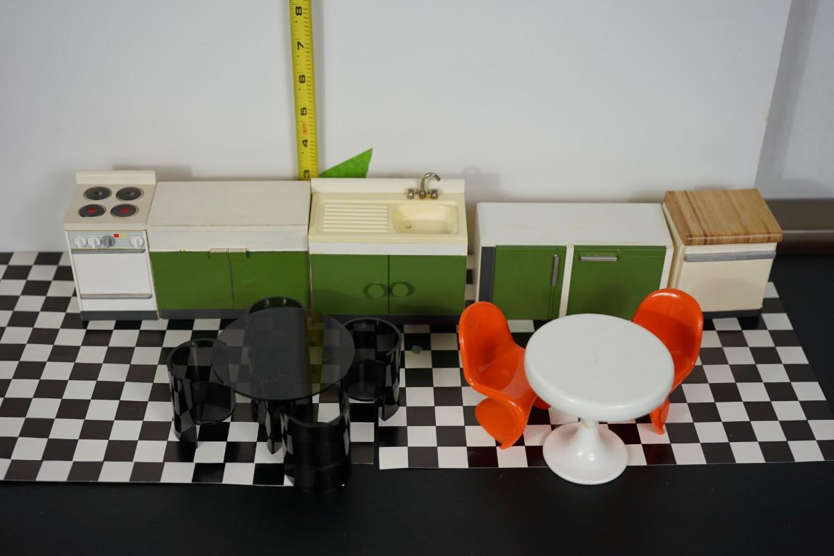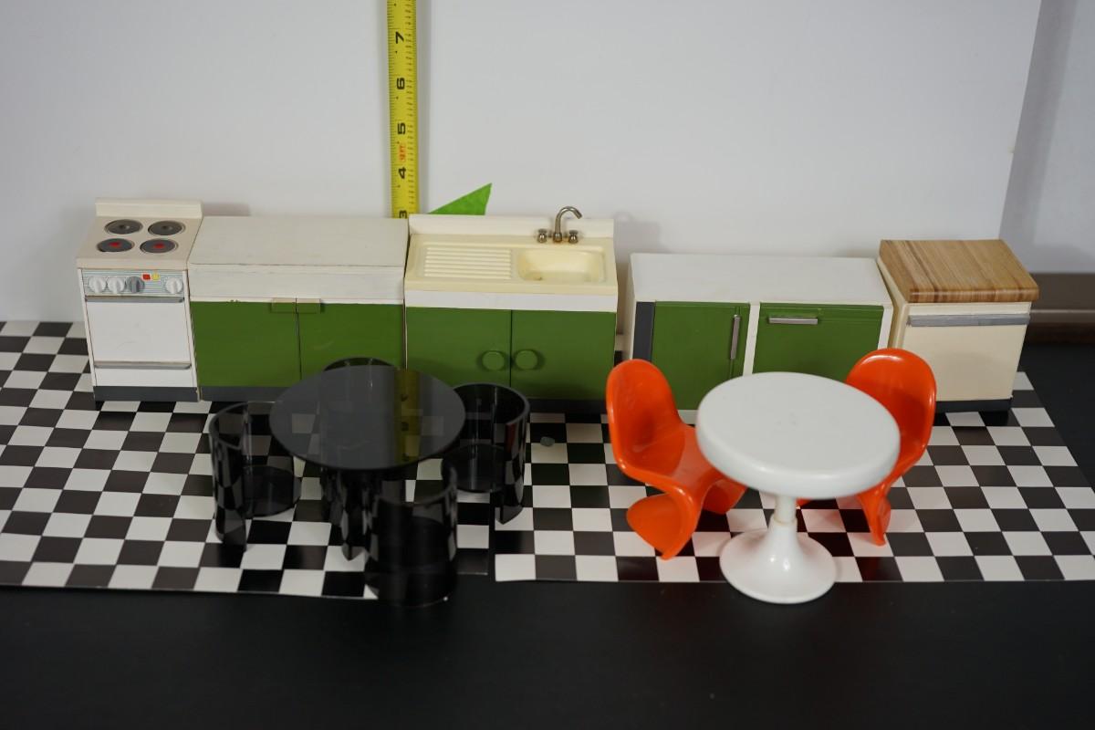 VINTAGE MCM  1960'S KITCHEN CABINETS, MCM STYLE TABLE SETS 3" KITCHEN CABINETSMADE IN GERMANY