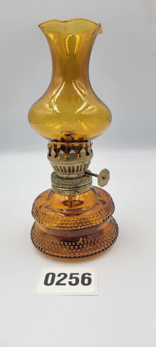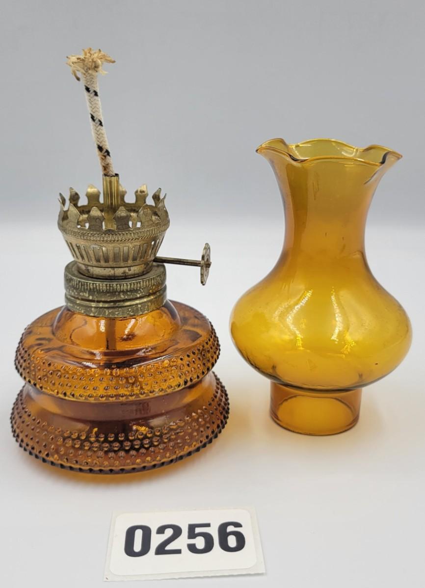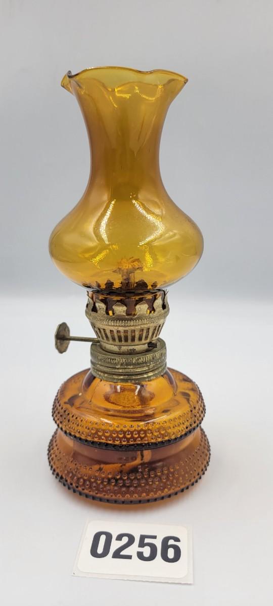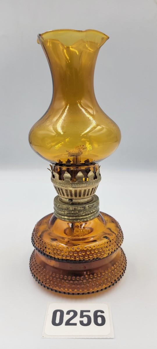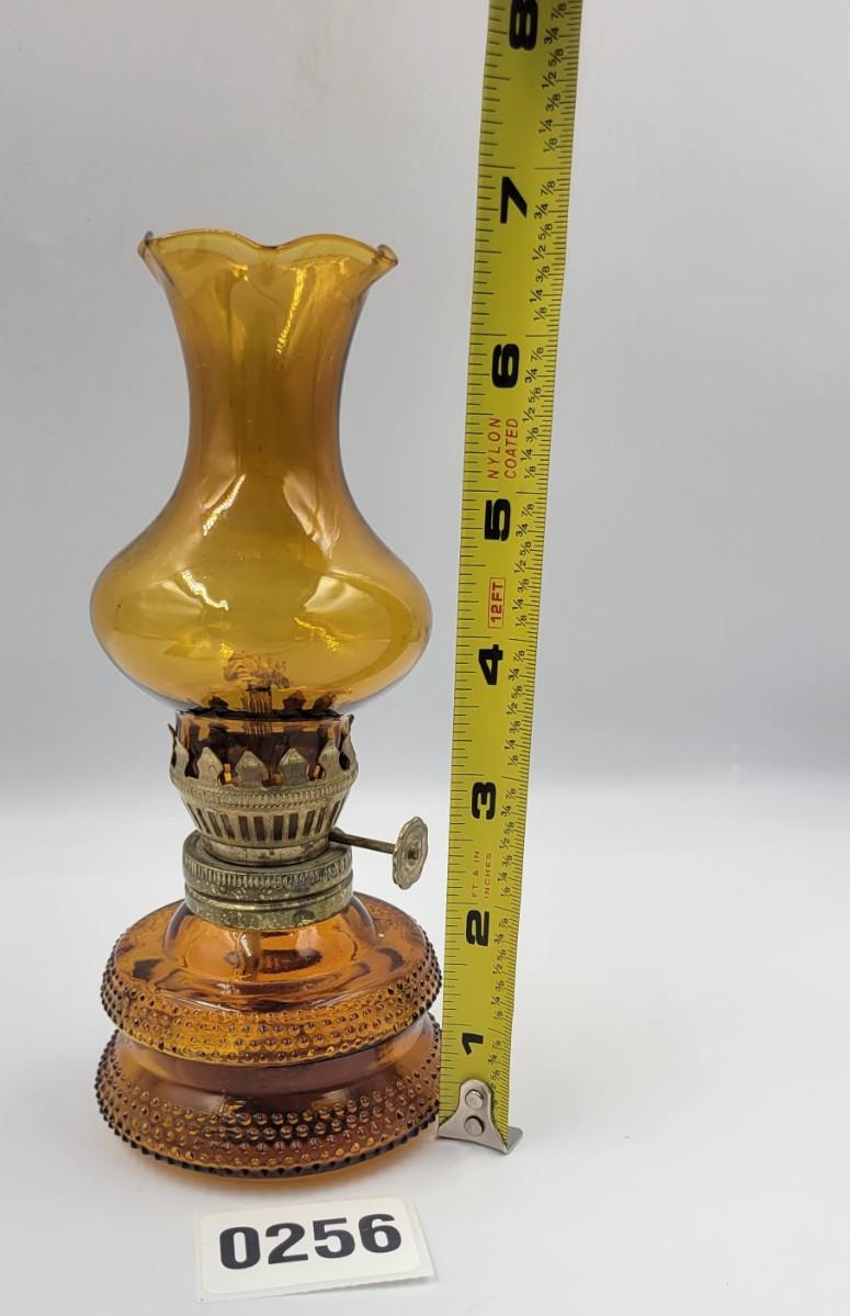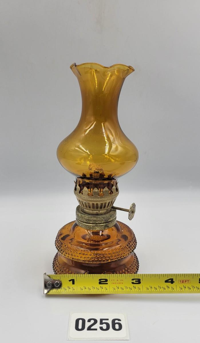 Vintage MCM Amber Glass Miniature Oil Lamp