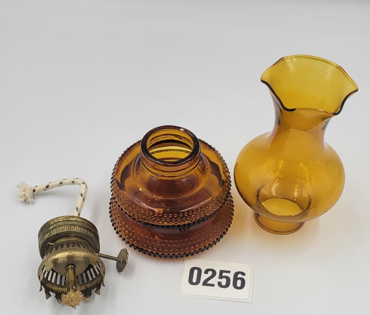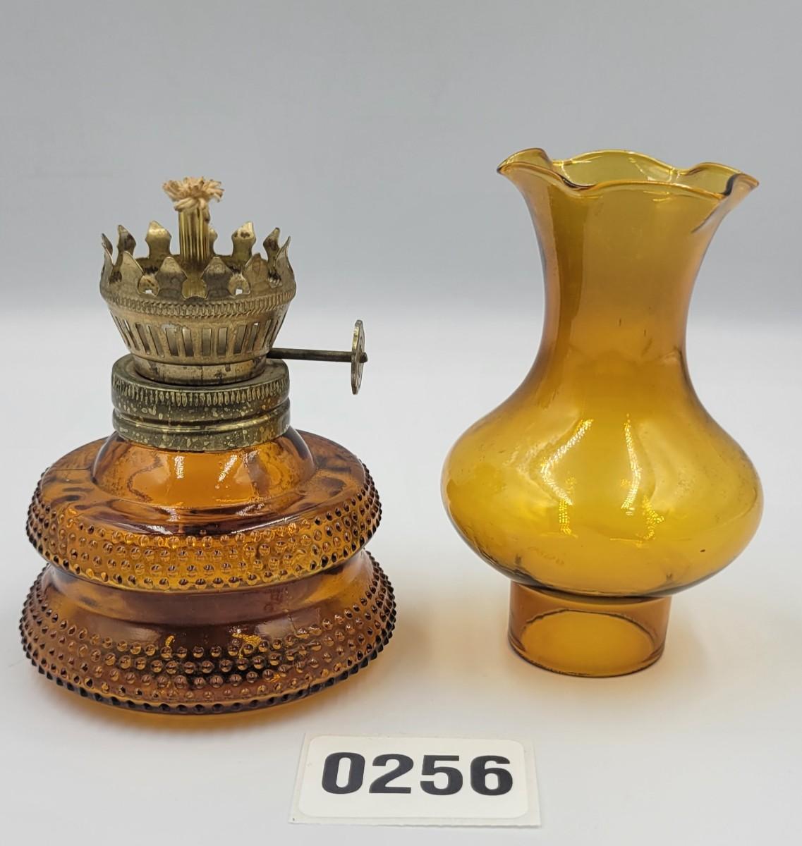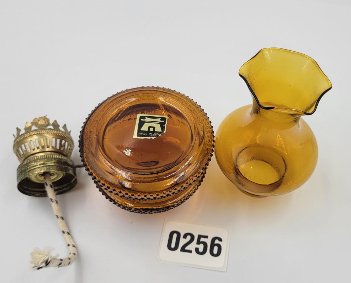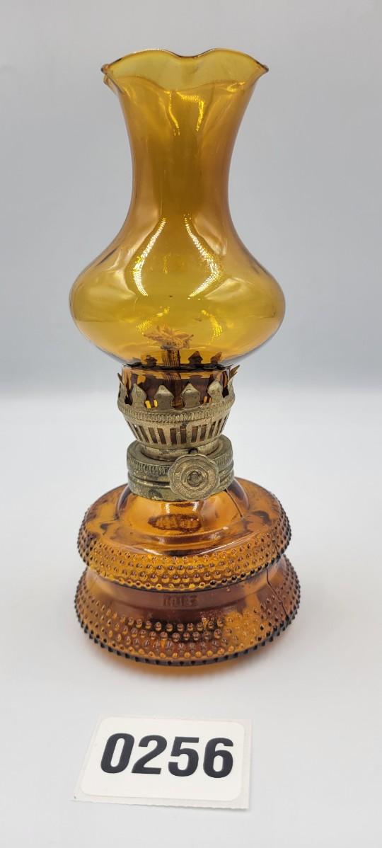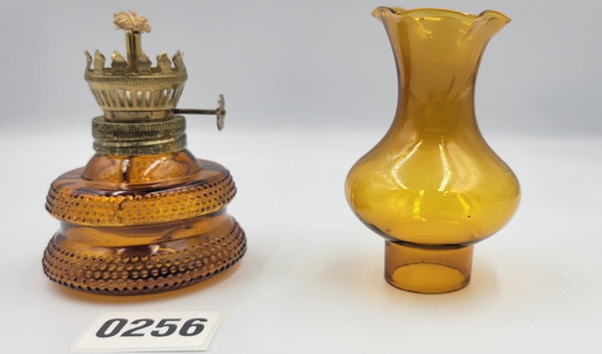 Vintage MCM Amber Glass Miniature Oil Lamp