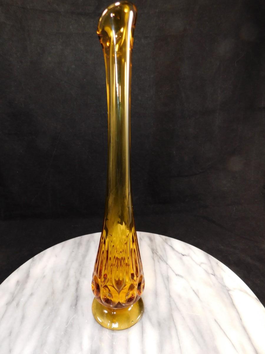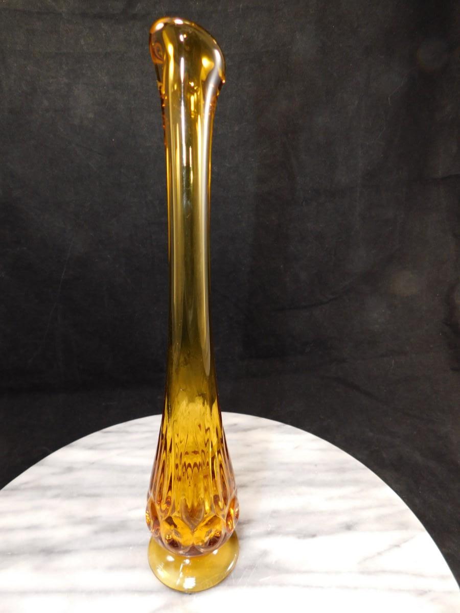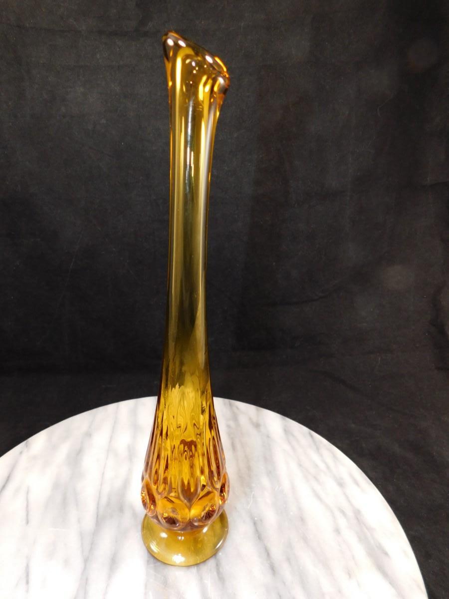 Vintage MCM Amber L.E. Smith Slung Glass Vase 10.5"