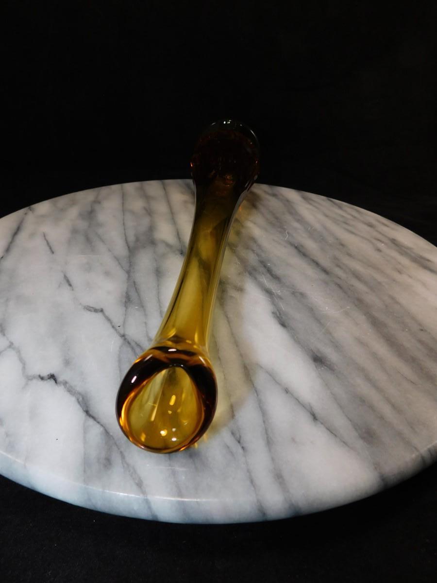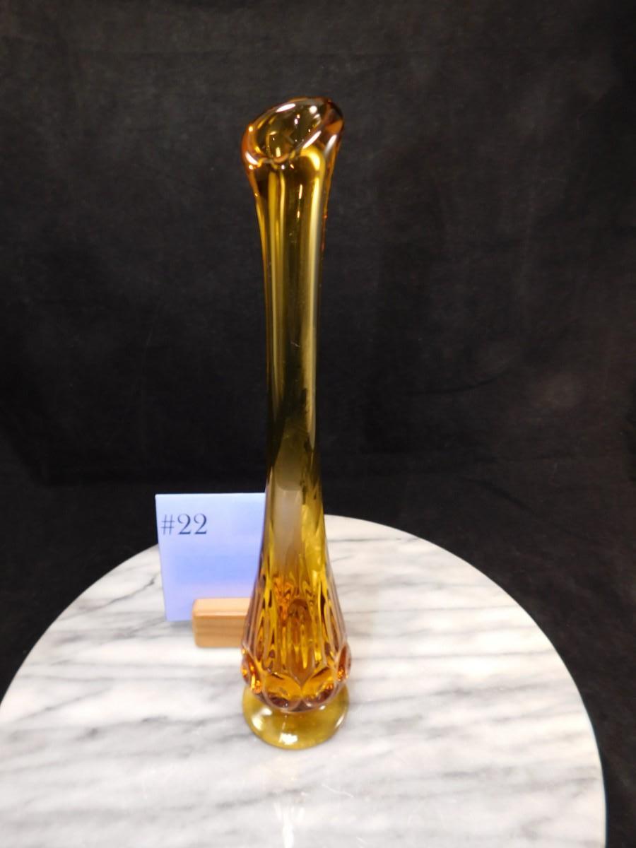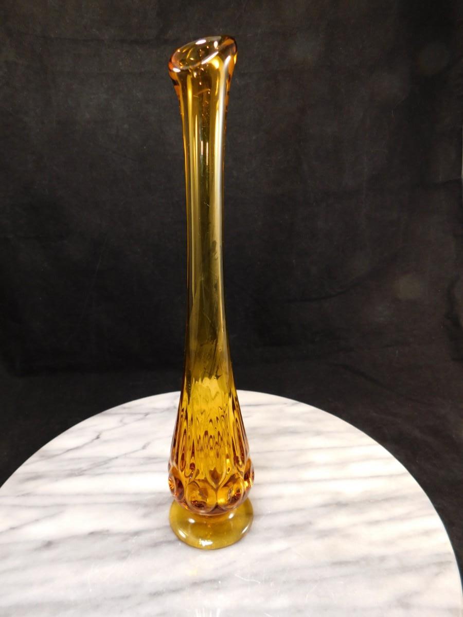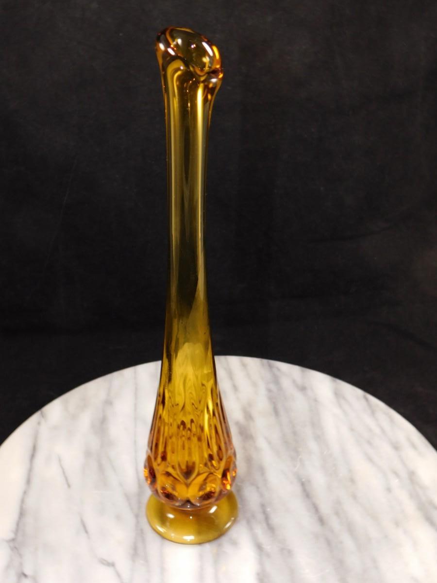 Vintage MCM Amber L.E. Smith Slung Glass Vase 10.5"