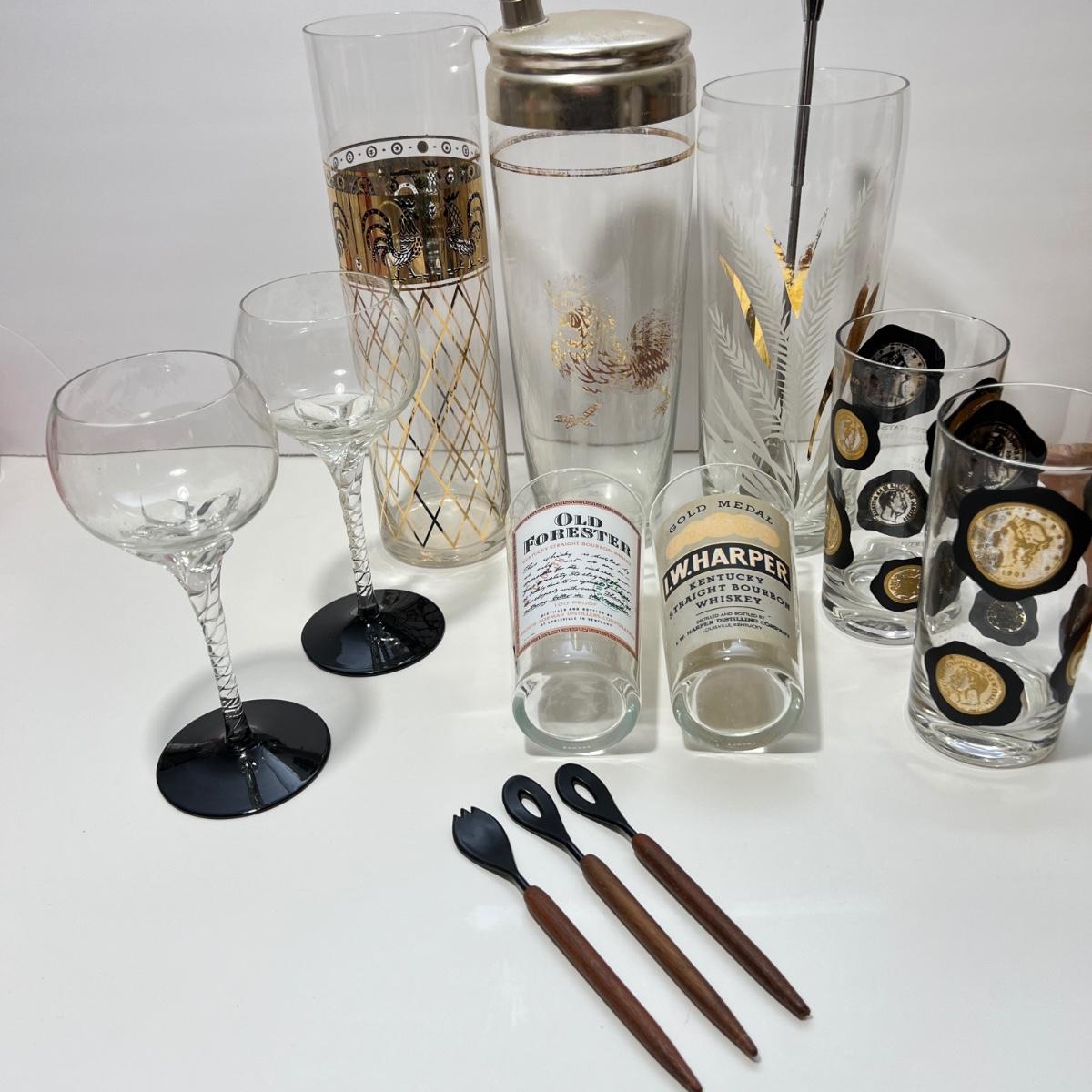 Vintage MCM Barware - Black, Gold, Teak Wood