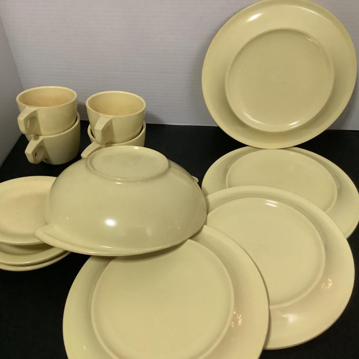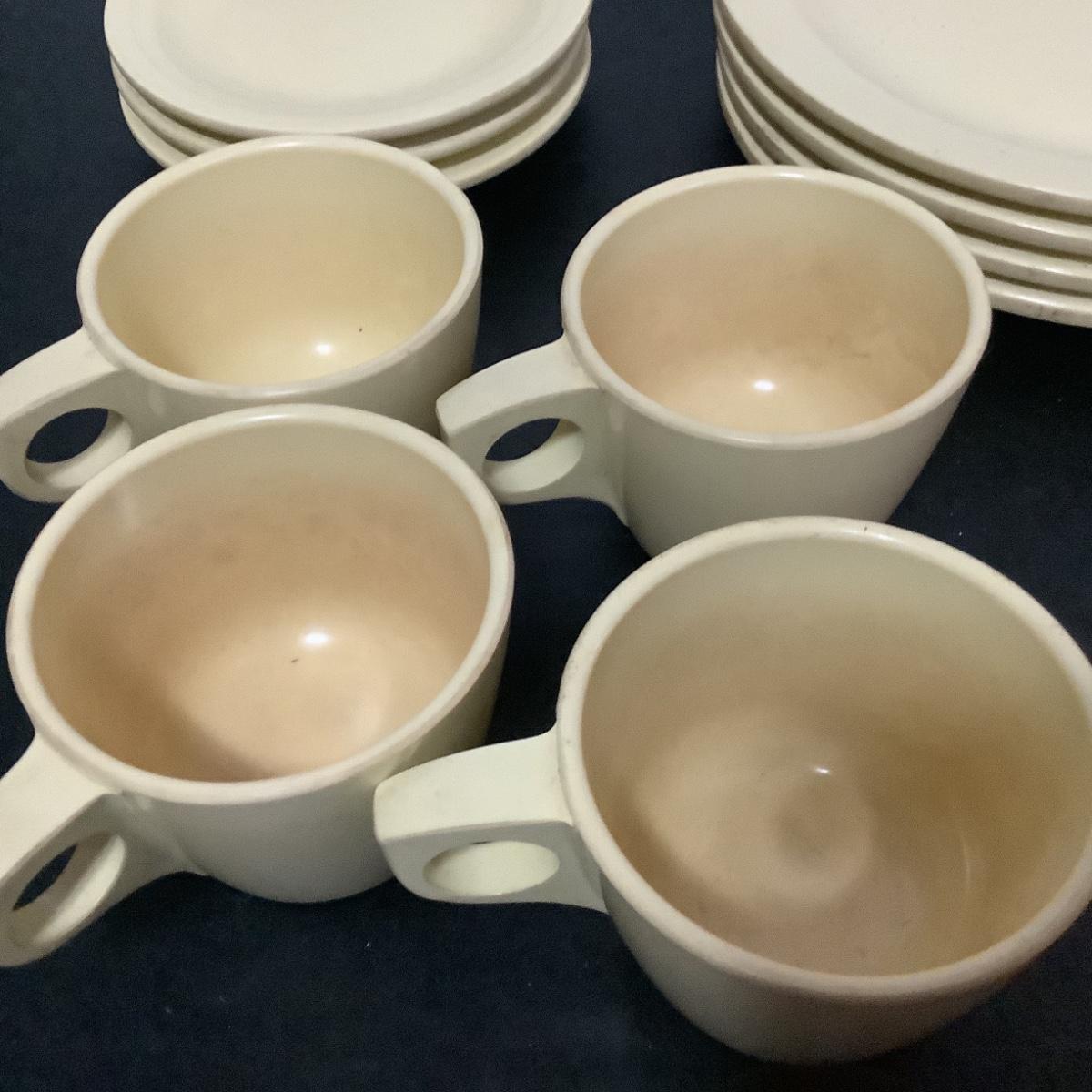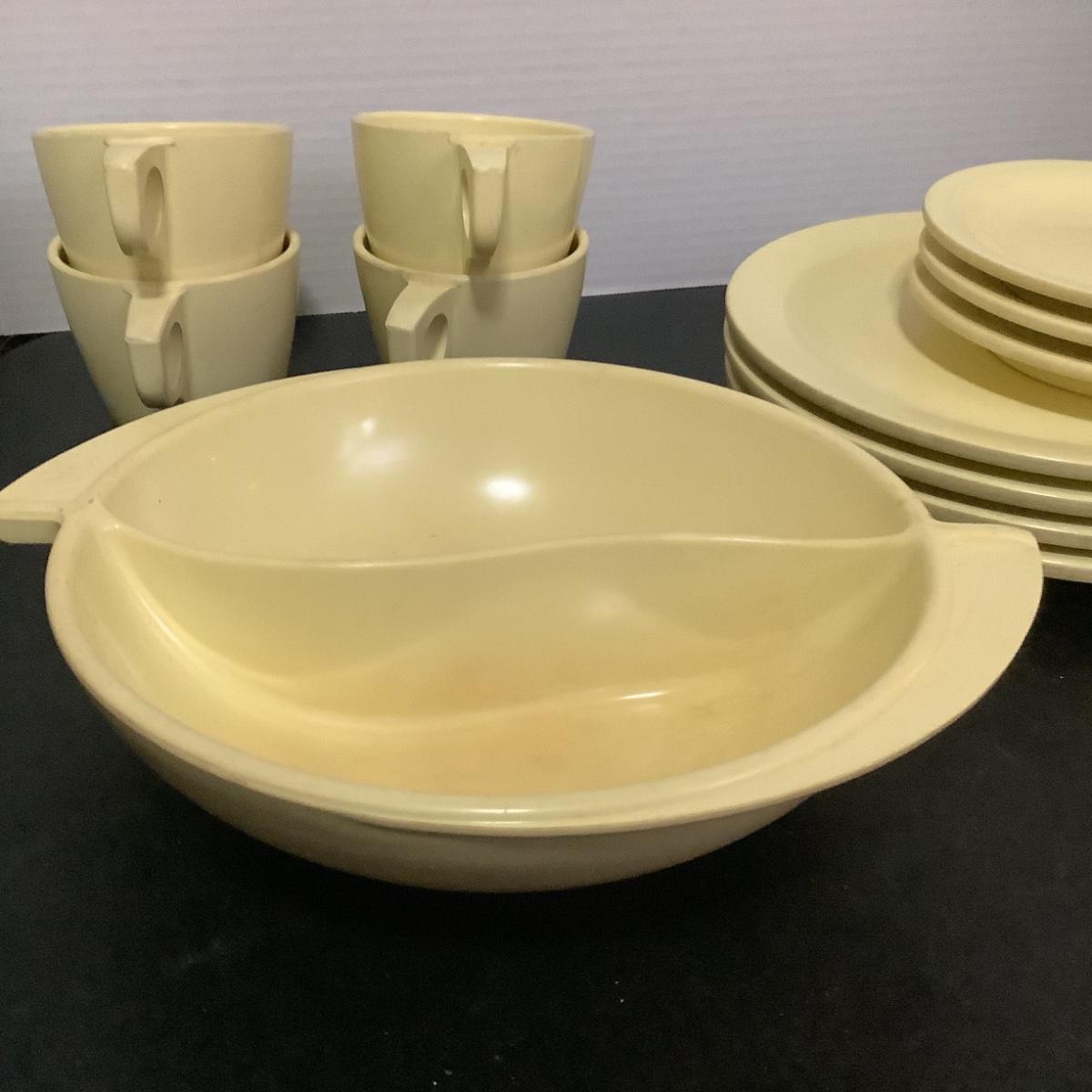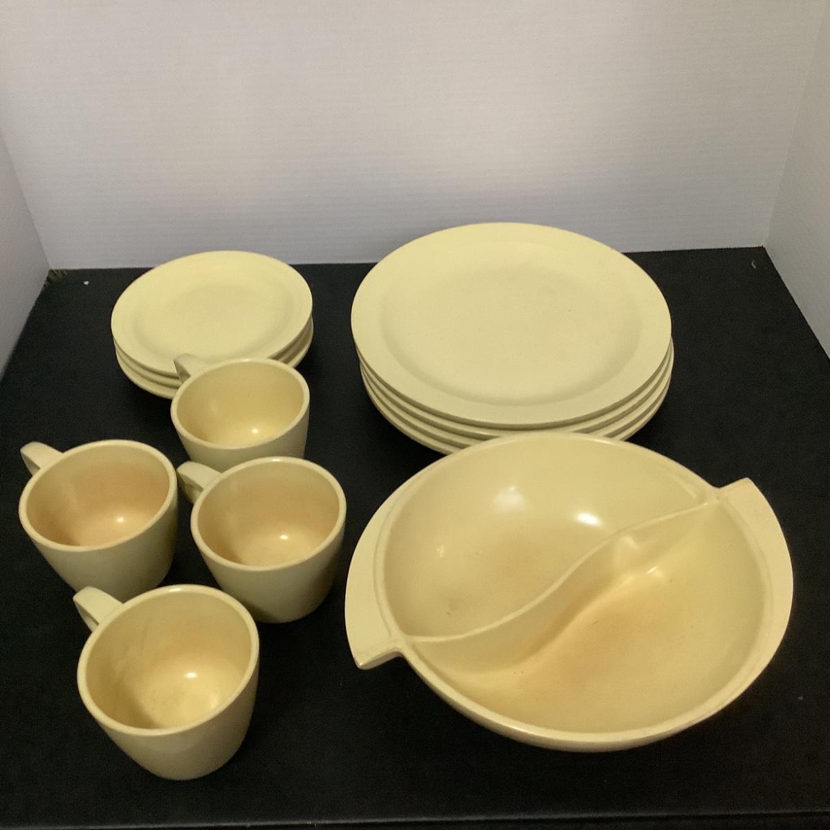 Vintage MCM BOONTON WARE Dishes/Winged divider bowl/coffee cups (Yellow color)