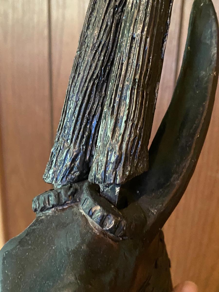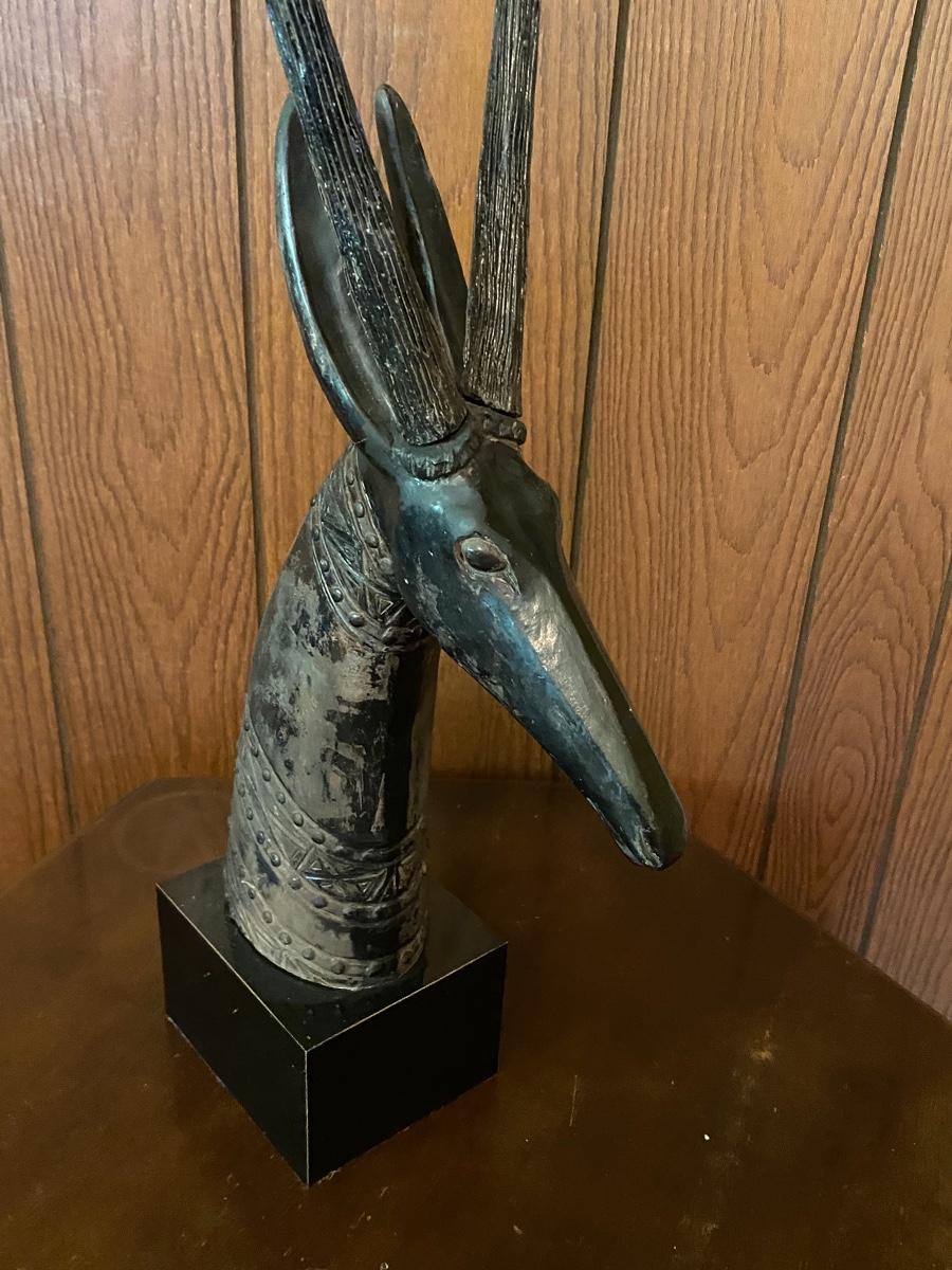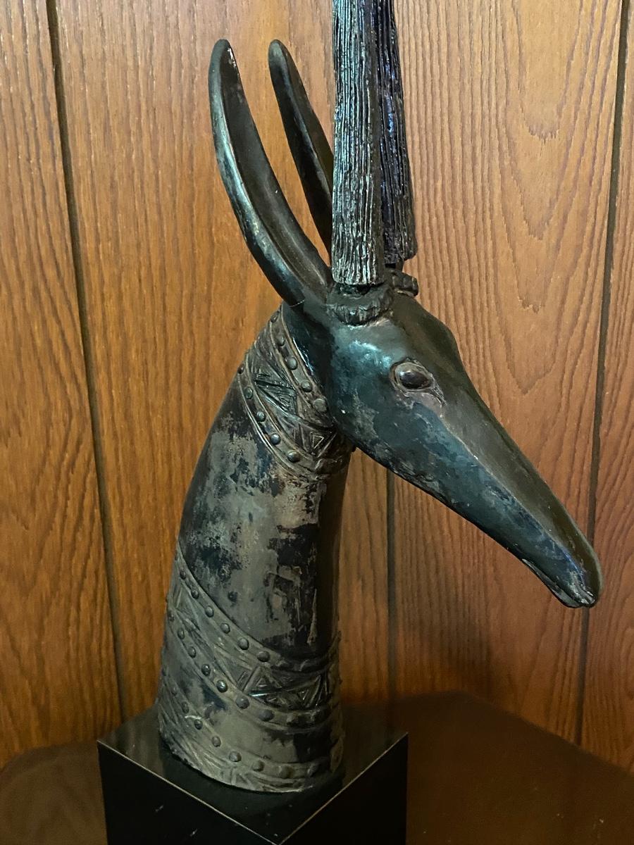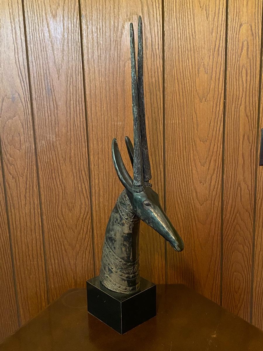Vintage Carved Wood Antelope Tji Wara Figurine Statue Austin Sculpture. 28" tall. Nicely done. Not one solid piece, antlers can be removed, there is a broken opening for one of them needs a little glue. Has info card attached to the bottom.