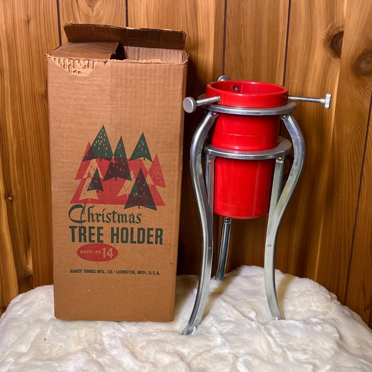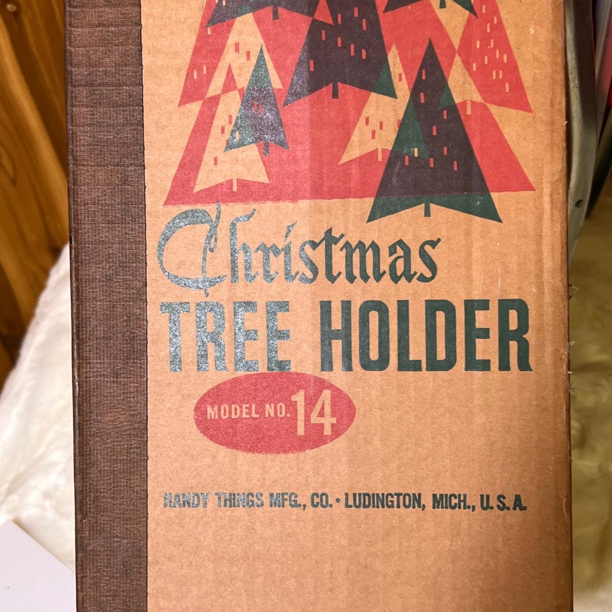 New in box vintage Christmas tree stand. Mid Century Modern. Would go well with the vintage ornaments we have listed!