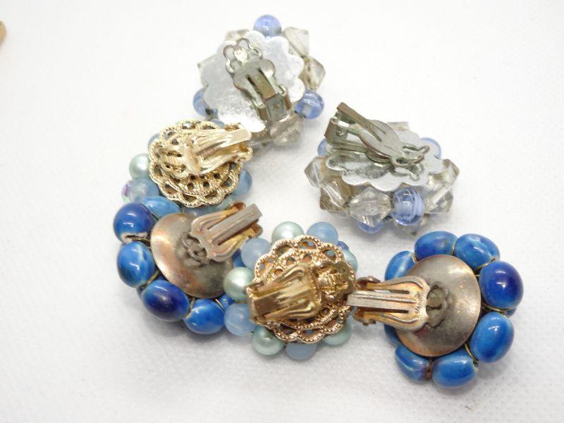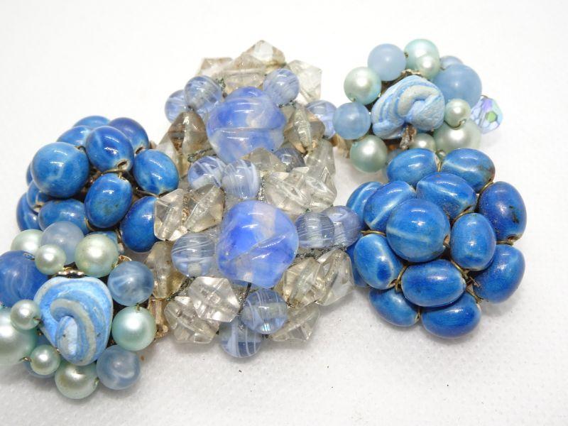Vintage MCM Cluster Blue Clip Earrings (3) pairs