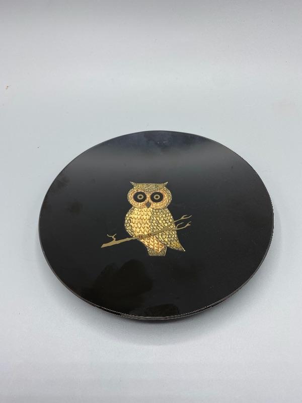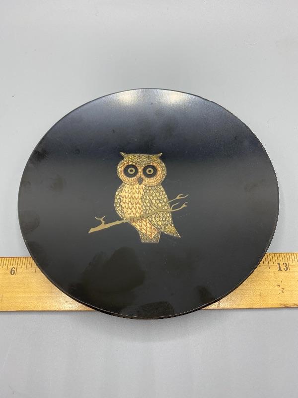 Vintage MCM Couroc of Monterey Owl Utility Dish Ash Tray Trinket Plate