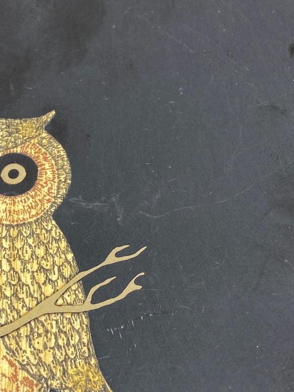 Vintage MCM Couroc of Monterey Owl dish. Inlaid wood and brass. 7" size. Design is in great condition. Still has original sticker on the bottom. A few light scratches on the surface.