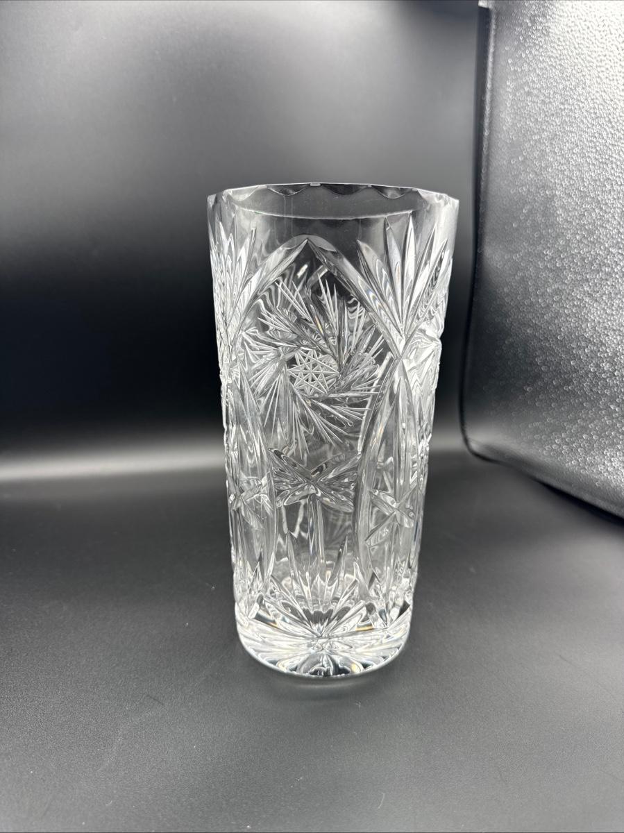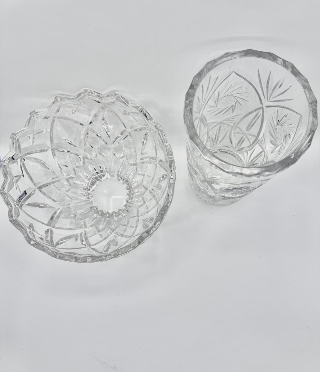 Deep Cut Crystal Punch Bowl Star Sawtooth Edge & Vase