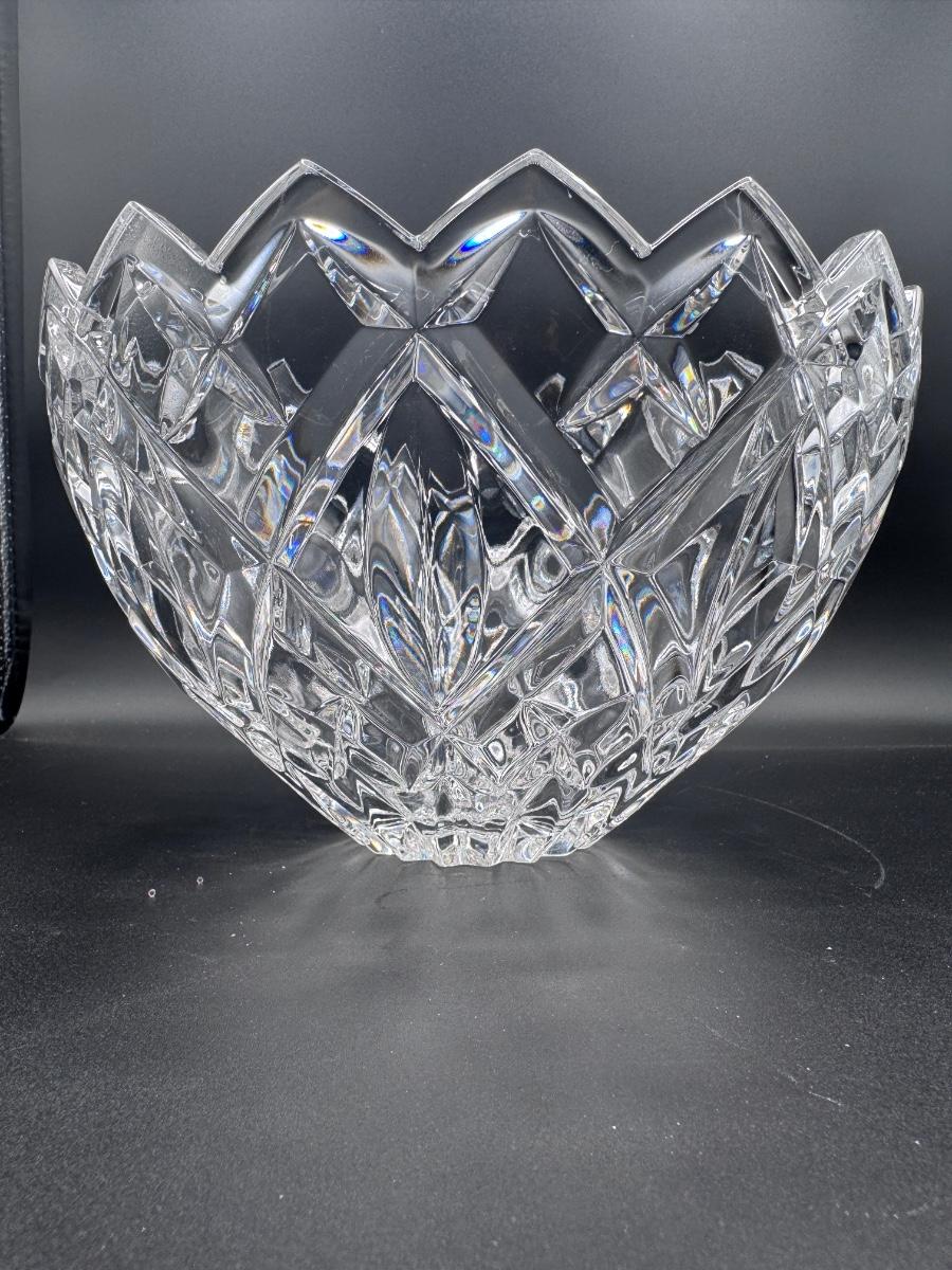 Deep Cut Crystal Punch Bowl Star Sawtooth Edge & Vase