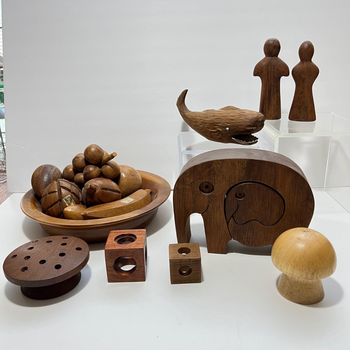 Vintage MCM Decorative Wood Lot - Figurines, Art, Candle Holders